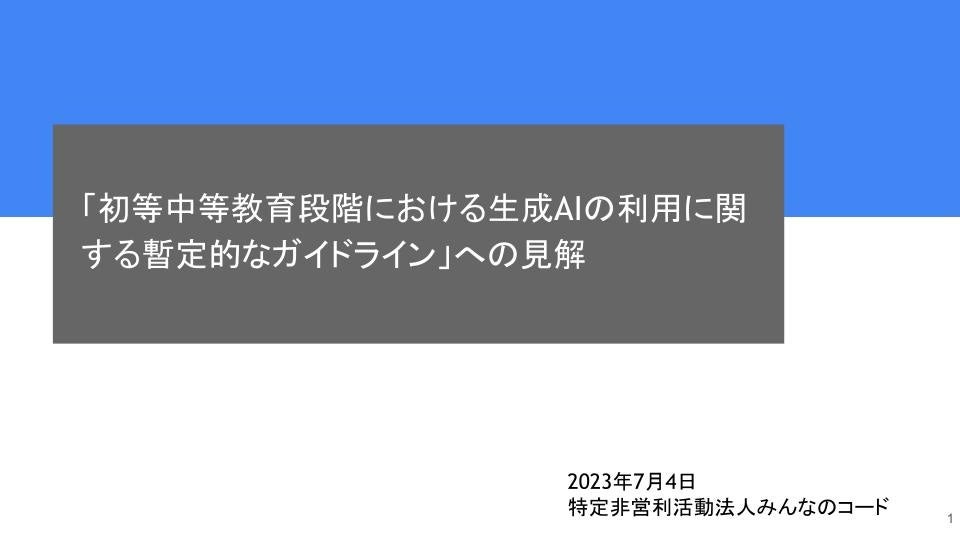 みんなのコード、文部科学省「初等中等教育段階における生成AIの利用に関する暫定的なガイドライン」への見解を発表