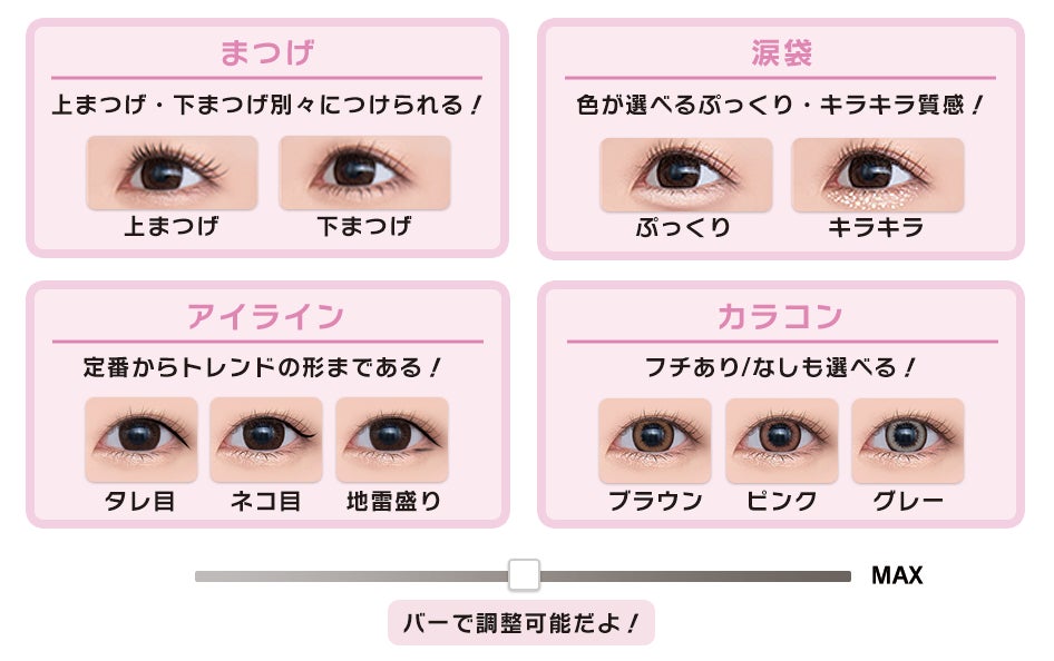 ③バーで細かく調整できる「アイメイク機能」!