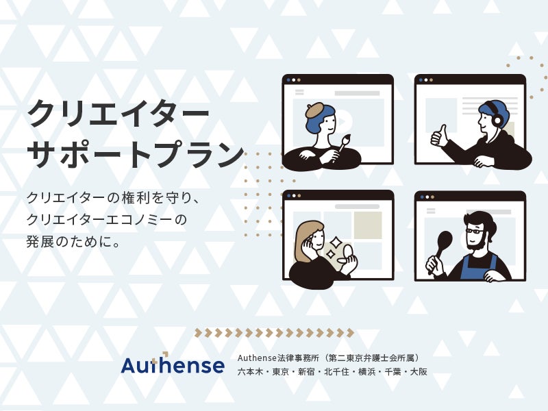 Authense法律事務所(東京都 港区)は、YouTuberやVTuberへの誹謗中傷、作品の盗用をはじめとした知的財産権に関する問題に積極的に取り組んできたノウハウを生かし、この度「クリエイターサポートプラン」をリリースいたしました。