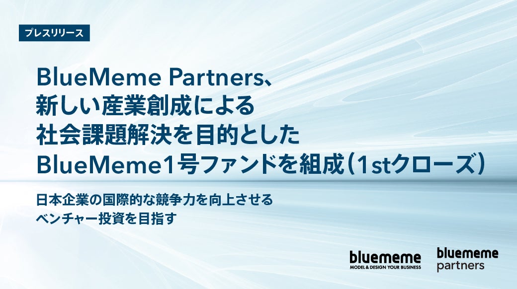 BlueMeme Partners、新しい産業創成による社会課題解決を目的としたBlueMeme1号ファンドを組成(1stクローズ)
