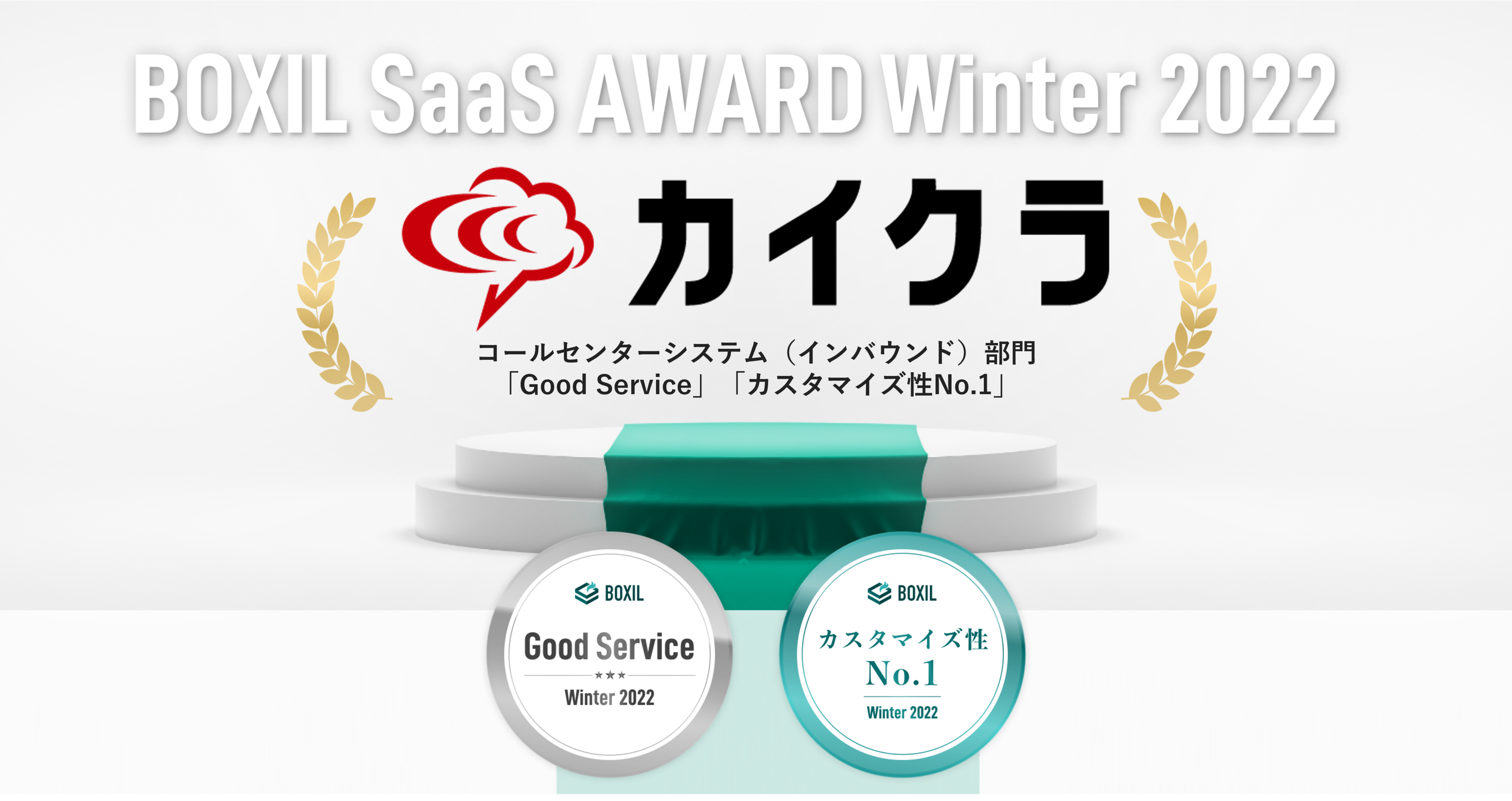 カイクラ、「BOXIL SaaS AWARD Winter 2022」コールセンターシステム(インバウンド)部門で「Good Service」「カスタマイズ性No.1」に選出