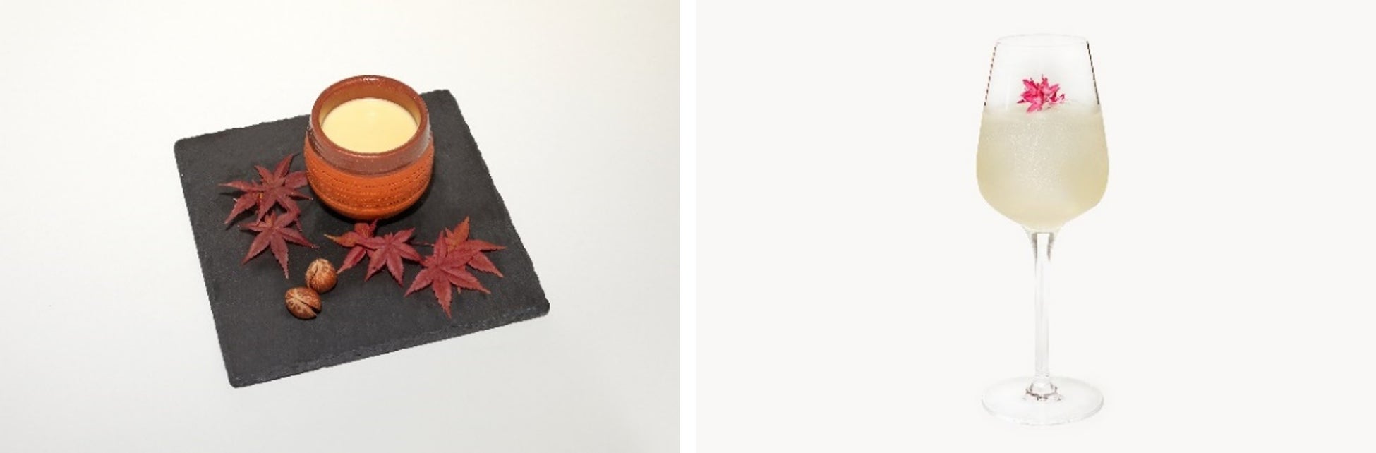 プディングのようなデザートカクテルには濃厚な栗を贅沢に使用しています。ジントニックには山椒、ミルクティーのようなホットカクテルには生姜がアクセントを加えています。