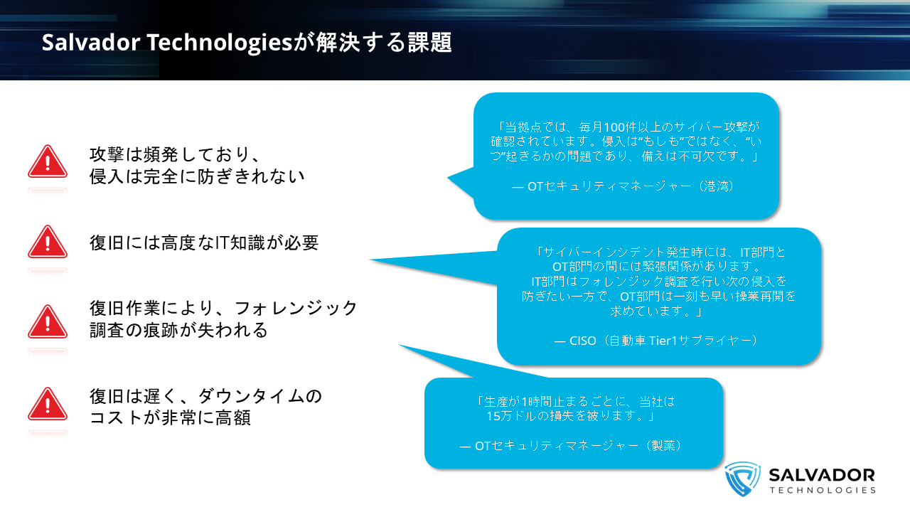 OTシステムの即時復旧を可能にするSalvador Technologies 社CEOが来日