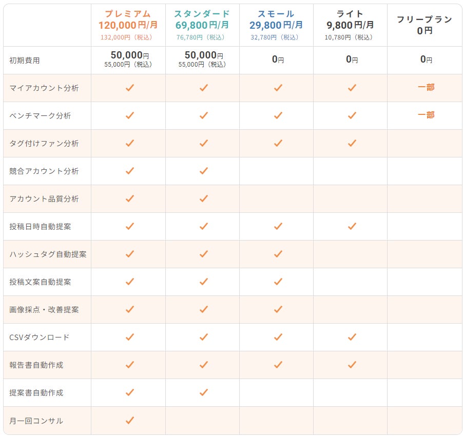 今回リリースされた、AIによる写真の改善提案機能、及び投稿分生成機能は、初期費用0円、月額29,800円(税別)以上のプランでご利用頂けます。