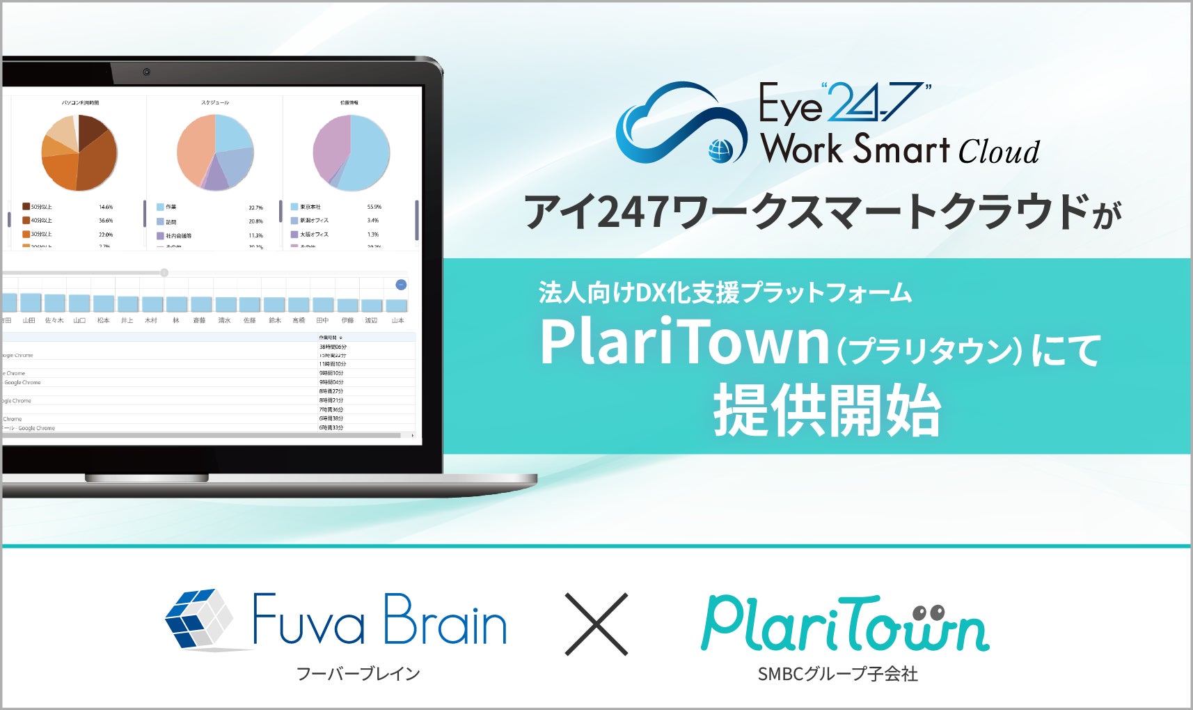 サイバーセキュリティカンパニーの株式会社フーバーブレイン(本社:東京都千代田区、代表取締役社長:輿水 英行、東証グロース3927、以下、当社)が提供するPCログ管理ツール「Eye“247” Work Smart Cloud(アイ247ワークスマートクラウド)」が、株式会社三井住友フィナンシャルグループ(以下:SMBCグループ)の子会社である株式会社プラリタウン(本社:東京都中央区、代表取締役:並木亮)が運営する法人向けDX・デジタル化プラットフォーム「PlariTown(プラリタウン)」 にて、提供が開始されたことをお知らせします。