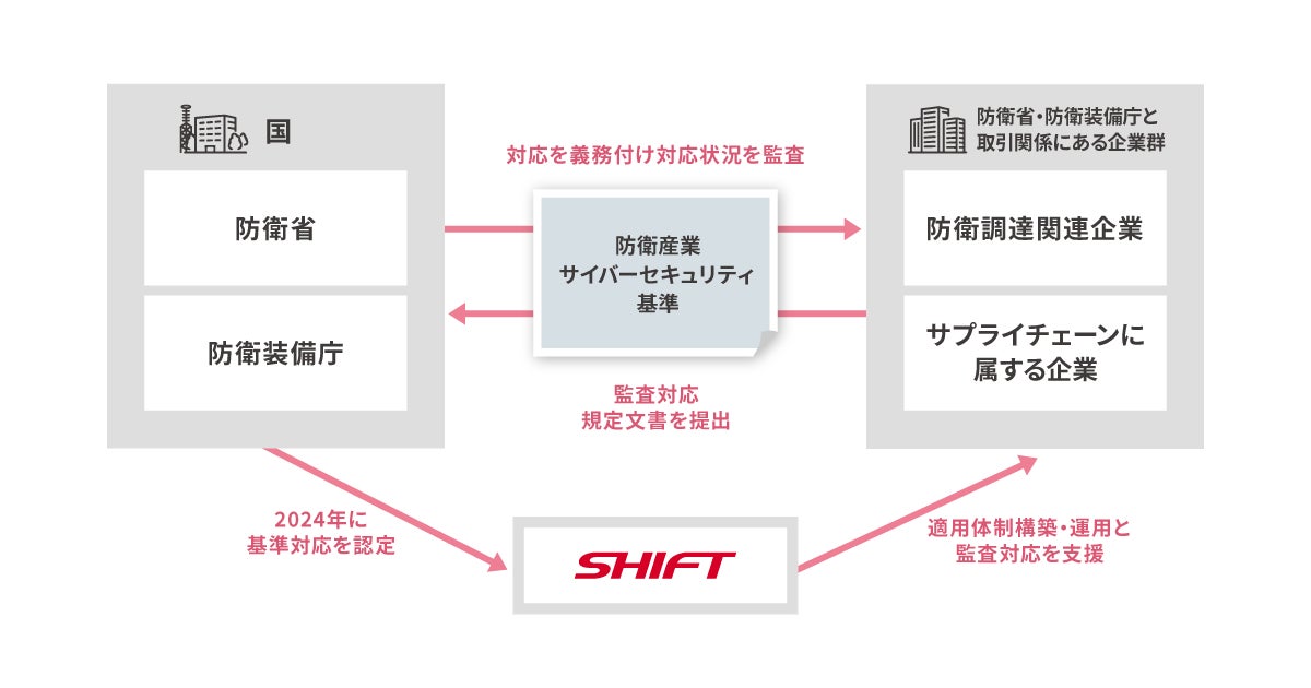お客様の売れるソフトウェアサービス/製品づくりを支援する株式会社SHIFT(本社:東京都港区、代表取締役社長:丹下 大、プライム市場:3697、以下SHIFT)は、防衛省・防衛装備庁が義務付けている「防衛産業サイバーセキュリティ基準」への対応をサポートする「防衛産業サイバーセキュリティ基準適用体制構築・監査対応支援サービス」の提供を開始します。