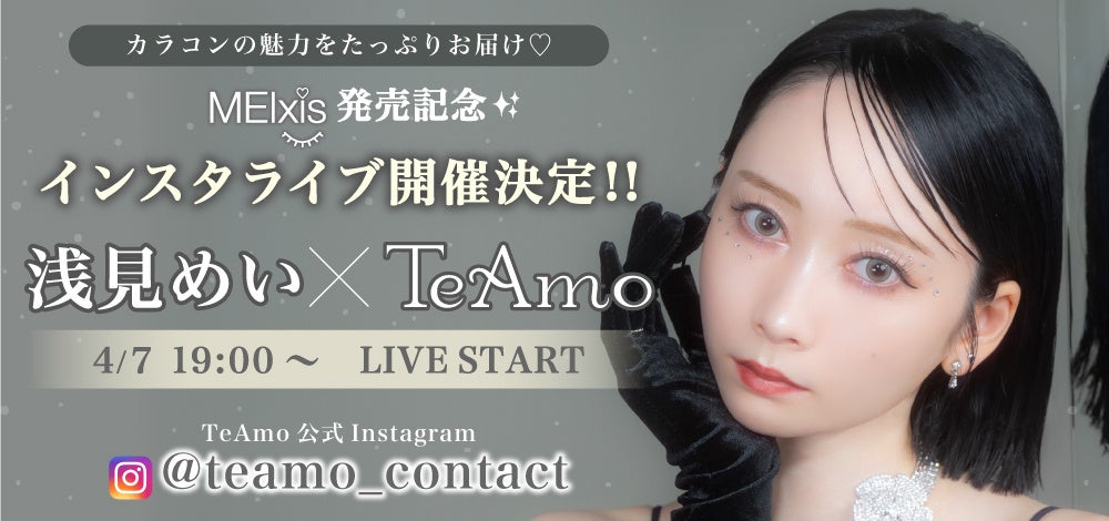 株式会社Lcode(代表取締役社長:藤原智洋、本社:大阪府大阪市)は、4月7日より、コンタクトレンズブランド「TeAmo(ティアモ)」の販売サイトから、人気動画クリエイターくれいじーまぐねっとの浅見めいさんがプロデュースするカラコンブランド【MEIxis(メイシス)】の販売を開始しました。