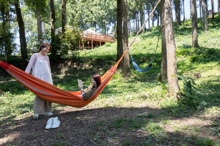 優しく光降り注ぐ「こもれびの森」が、"七夕"飾りで彩られた癒やしの空間に。ハンモックに揺られ、昼は木々の香りとそよ風を感じ、夜は幻想的なライトアップに包まれる、森への没入体験。自然の中で五感を解放し、日常から解き放たれることで、深いリフレッシュ効果を得られます。