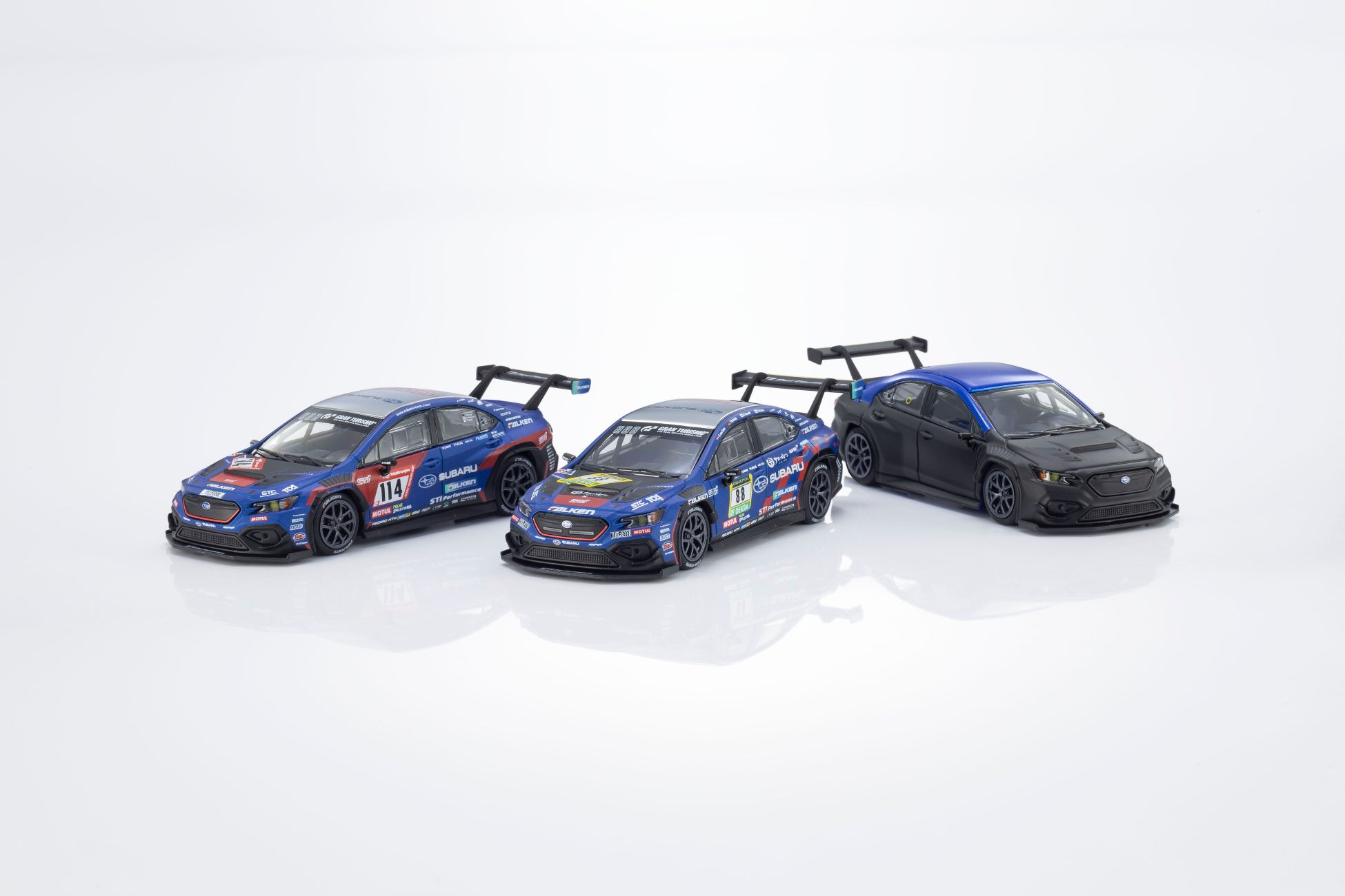 ニューマシンにスイッチし、新たなスタートを切ったNBRチャレンジの2023仕様と2024仕様を、1/64スケールでモデル化。WRブルーとチェリーレッドのボディは、スポイラーやウイングはもちろん、小さなカナードやフェンダー上のダクト、細かなステッカーや文字まで見事に再現。アルミホイールの造形も実車とほぼ同一です。室内に目を向ければ、ダッシュボードやロールケージをはじめ、スイッチなどの細部までしっかりと作り込まれています。そして、ライトが点灯するMOTN(モトン)システムを搭載。別売りのMOTN LEDベースシステムと組み合わせれば、ヘッドライトとテールライトを点灯させることが可能。夜間のディスプレイもいっそう楽しくなるはずです。