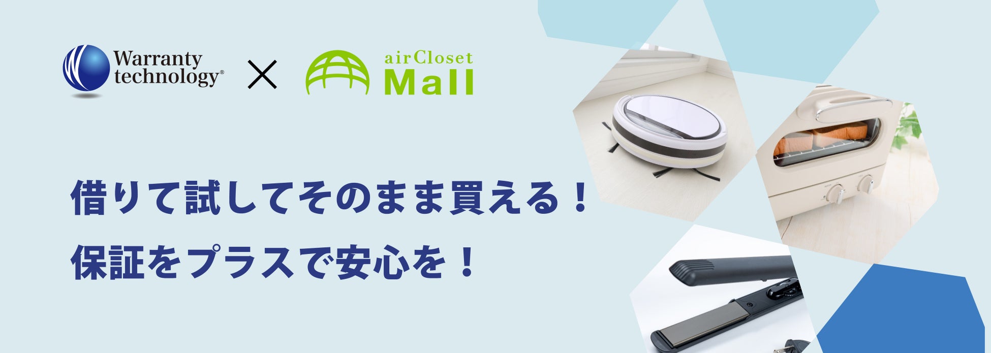 延長保証サービスの構築・運営を行う株式会社Warranty technology(本社:東京都千代田区、代表取締役CEO:宮原 年明、以下「ワランティテクノロジー」)は、株式会社エアークローゼット(本社:東京都港区、代表取締役社長 兼 CEO:天沼 聰)と業務提携を行い、同社が運営するメーカー公認の月額制レンタルモール『airCloset Mall(以下「エアクロモール」)』をご利用されるお客様が購入した「家電製品等への延長保証サービス(新品、中古品問わず)」を開始したことをお知らせいたします。