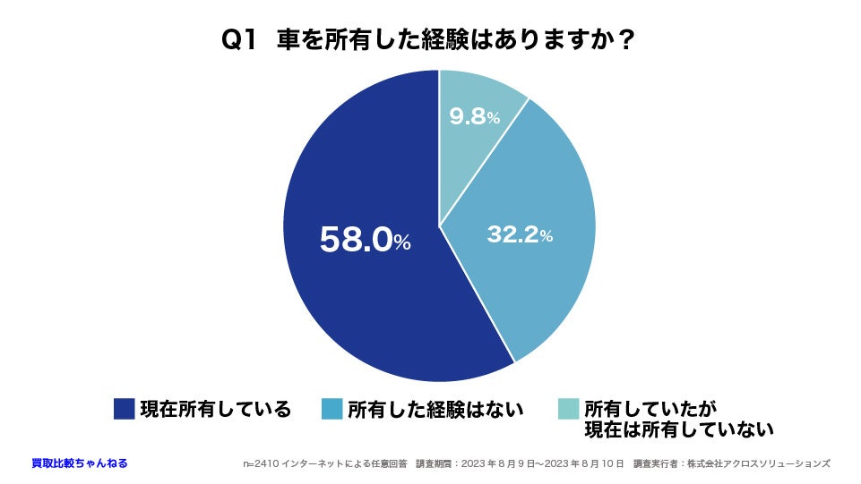 最も多い回答は58%で「現在も所有している」で、次点が「所有した経験はない」で32.2%でした。