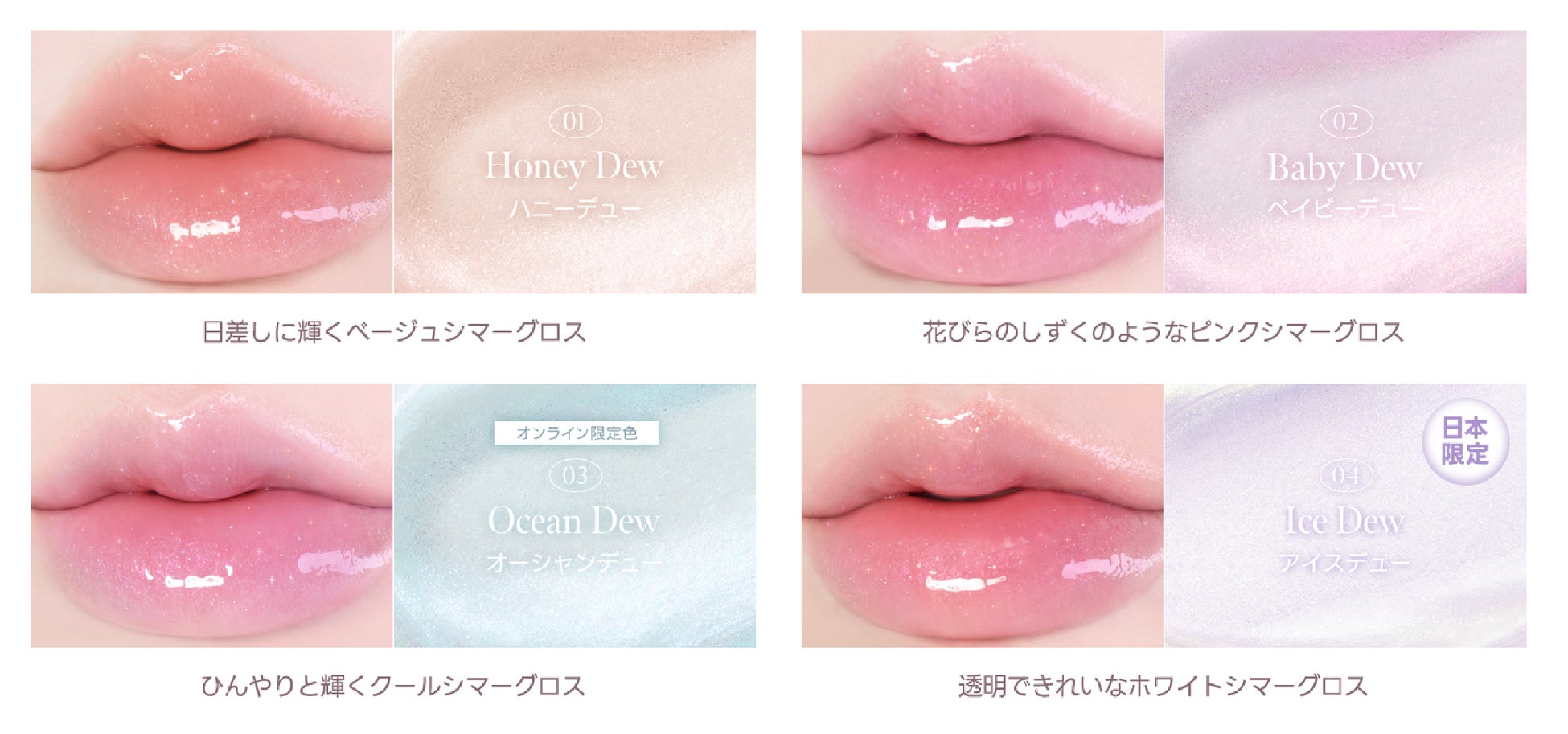 雨上がりの花びらや、しずくをイメージした全11色の"デューステインシアーグロスコレクション"が新登場。