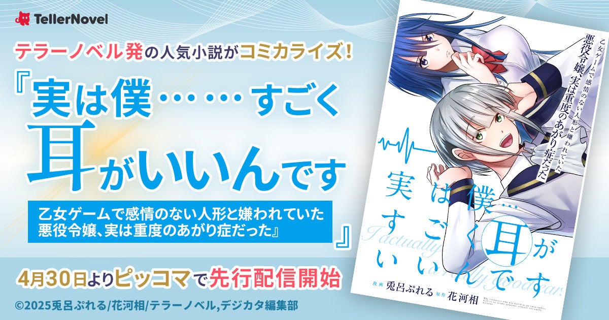 株式会社テラーノベル(本社:東京都港区、代表取締役社長:蜂谷宣人)はこの度、累計DL数760万突破(※)の小説プラットフォーム「テラーノベル(https://teller.jp/)」発の人気小説『実は僕……すごく耳がいいんです〜乙女ゲームで感情のない人形と嫌われていた悪役令嬢、実は重度のあがり症だった〜』がコミカライズされ、4月30日より「ピッコマ」にて先行配信を開始したことをお知らせいたします。