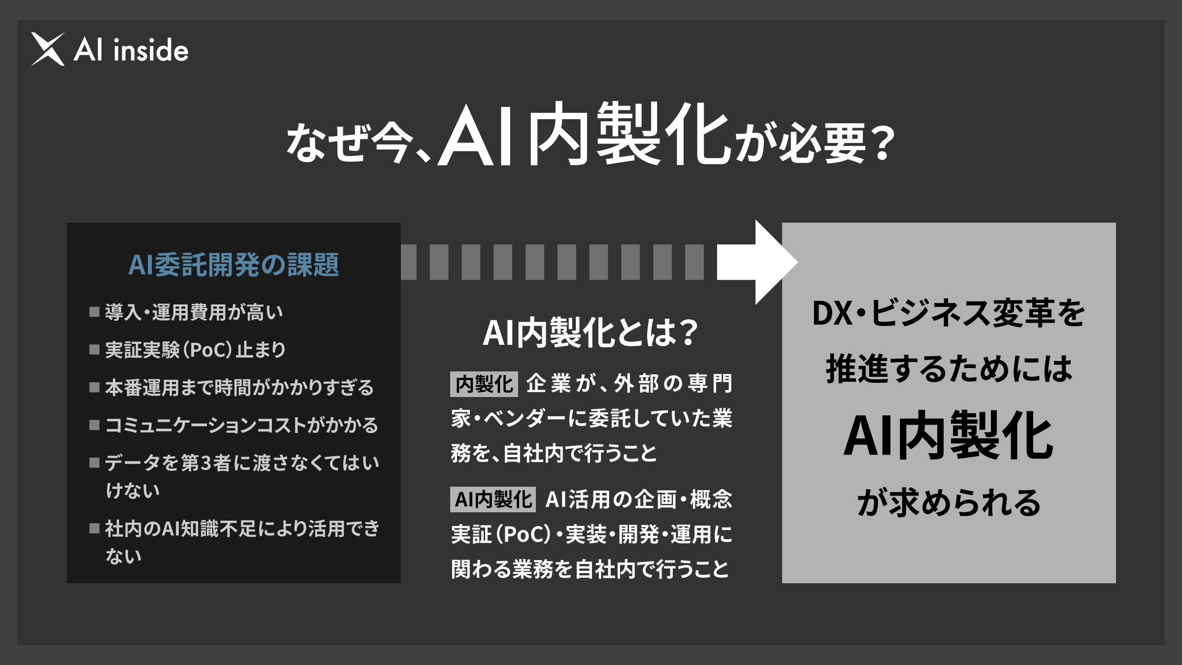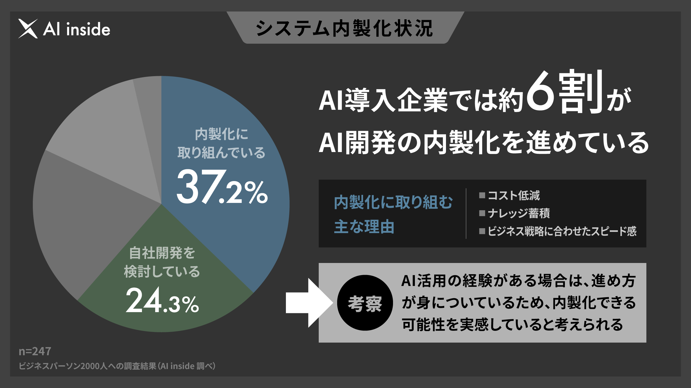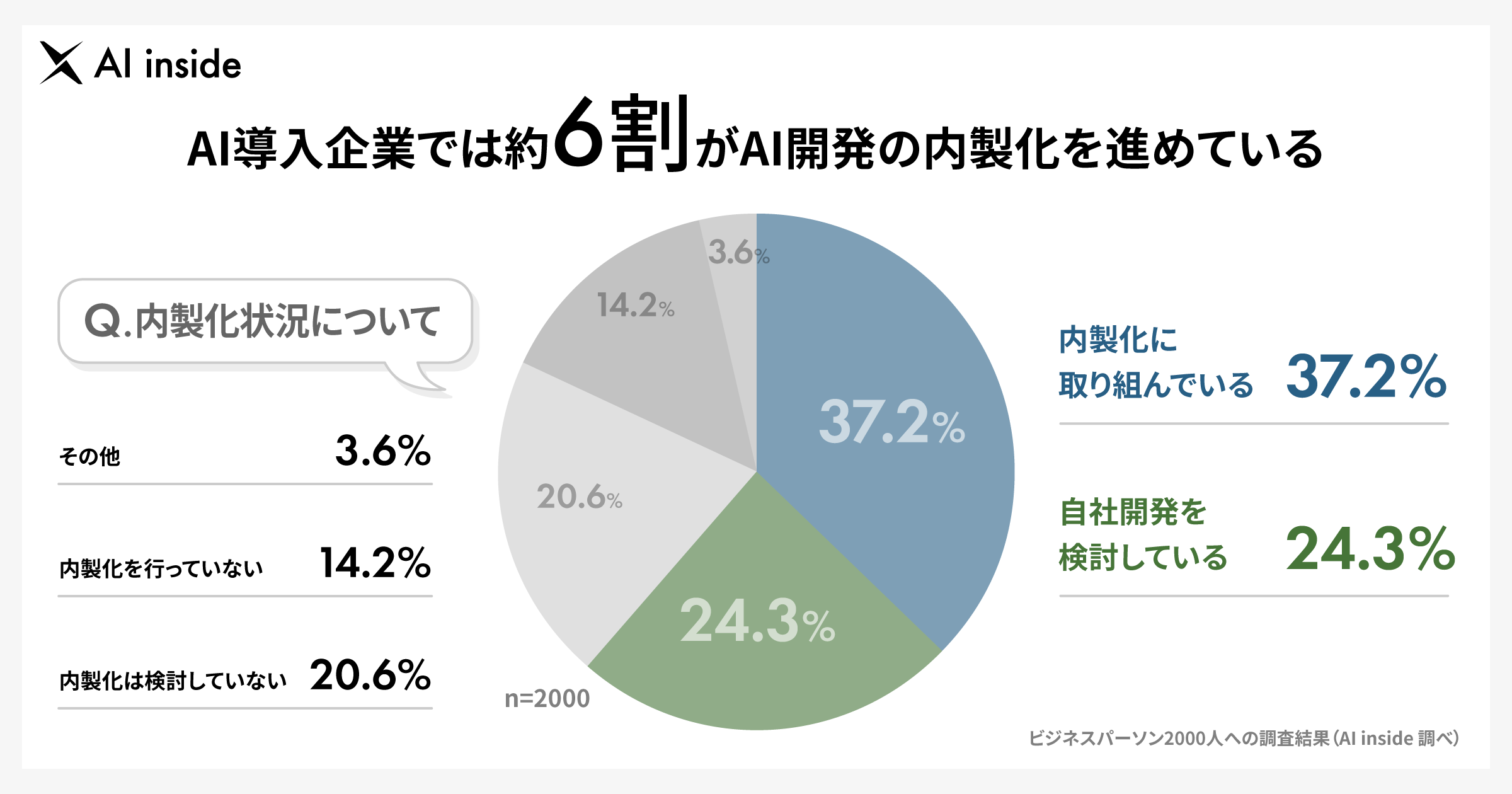 AI導入企業では約6割がAI開発の内製化を進めていると回答、AI inside が企業のAI内製化・AI人材育成状況の調査を実施
