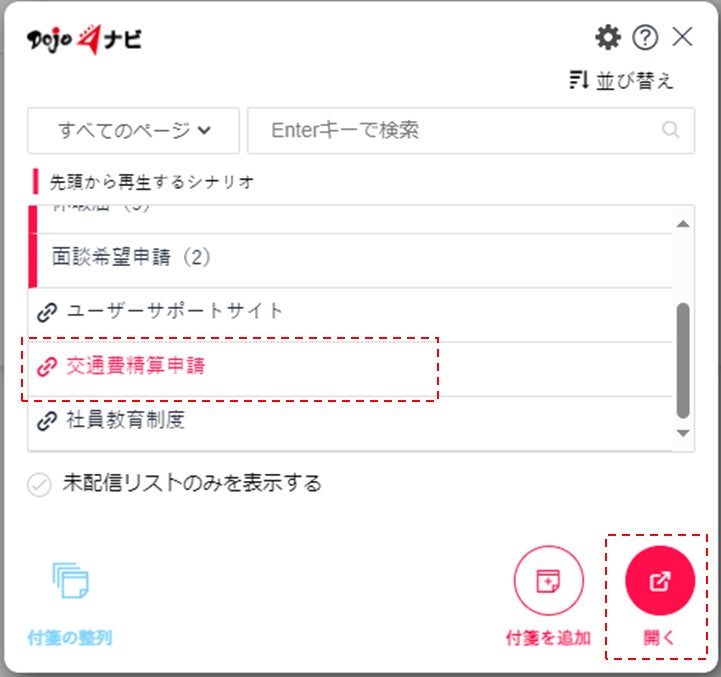 外部リンク機能で設定した内容は、Dojoナビのメニュー上にリンク集のような形式で表示されます。この機能を活用することで、ユーザーにとって必要な情報へのアクセスを容易にします。