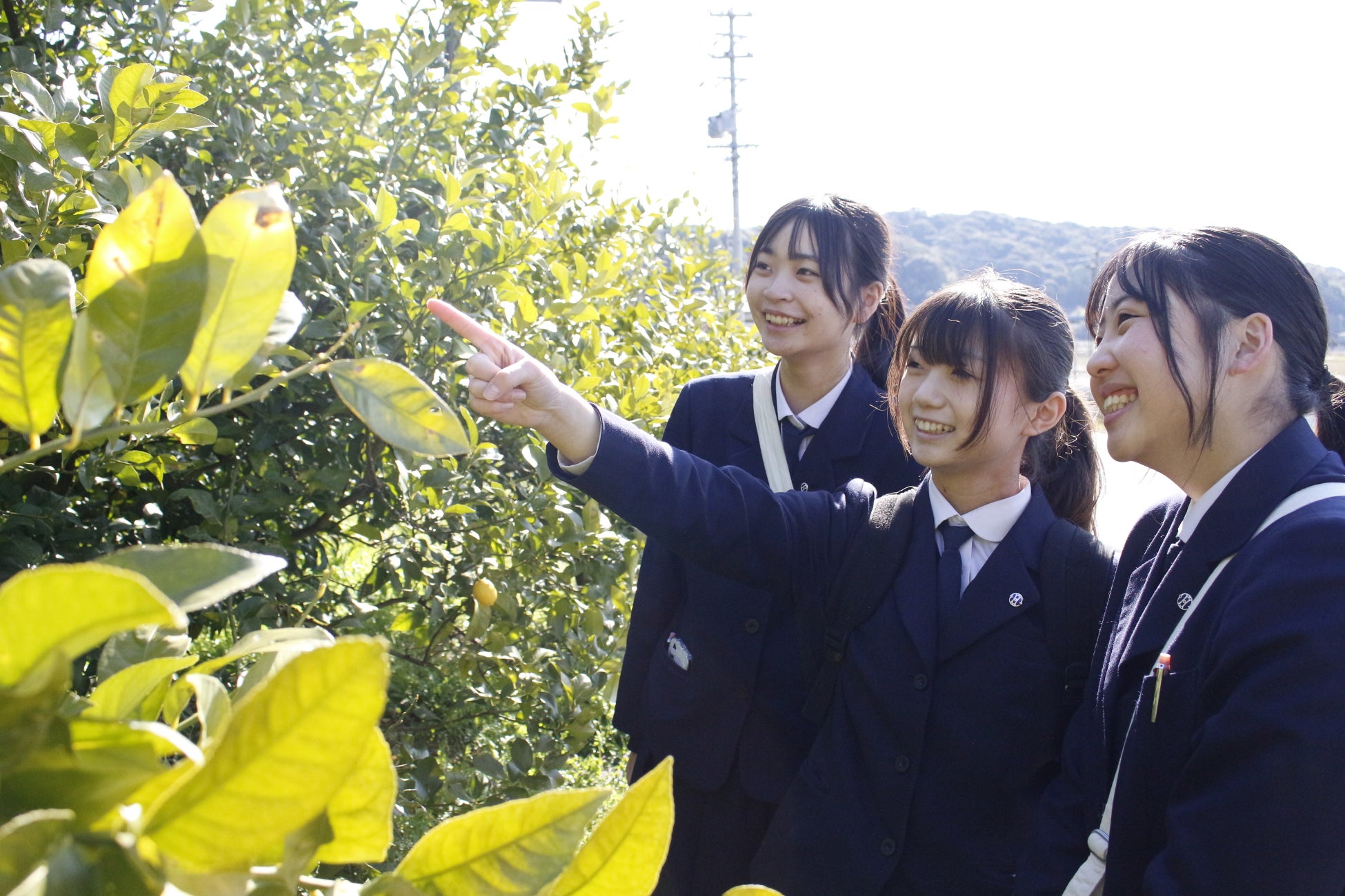 浜商 調査研究部と春華堂は、実際に浜松市内のレモン農家のひとつである山本さん宅を訪問。みかん栽培の技術を活かしながら、レモンを栽培しています。雨が少なく冬でも暖かい浜松の気候は、甘みも酸味もしっかりしたおいしいレモンが育つと言われています。