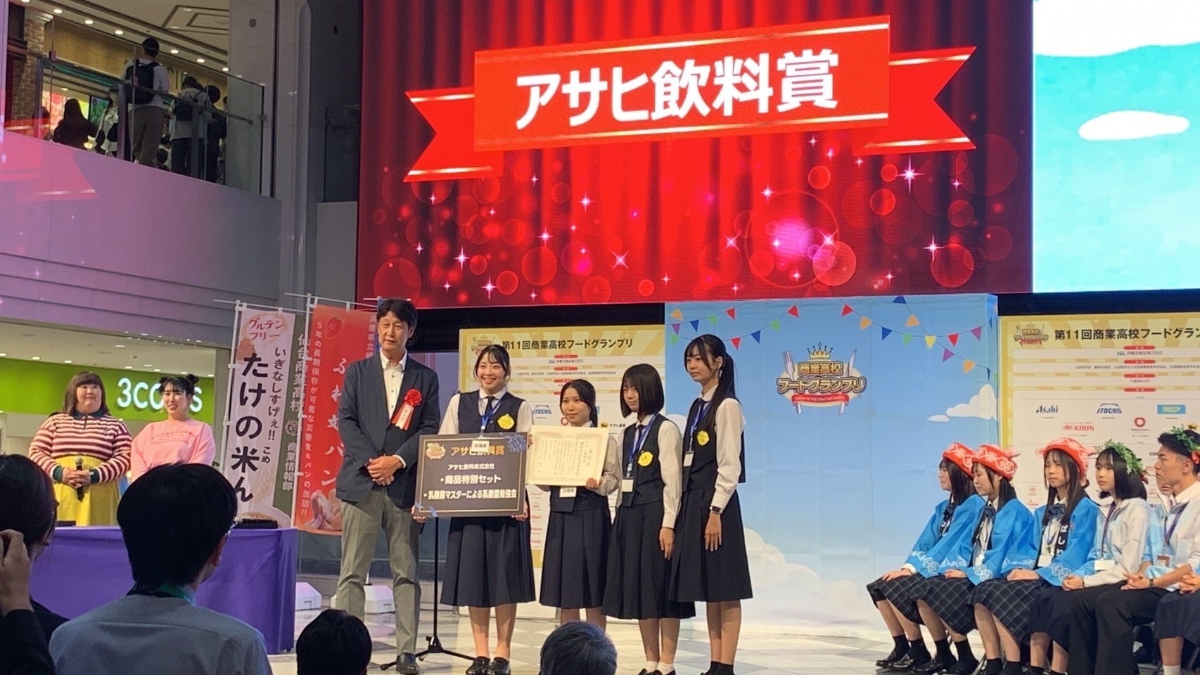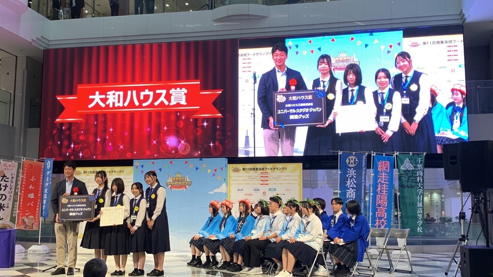 会場には春華堂メンバーはもちろん、浜商OBOGや君にれもんに関わる方々も応援に駆け付け、予選を通過した6校が試食販売やプレゼンテーションを行いました。結果は10個ある賞のうち、「アサヒ飲料賞」「大和ハウス賞」「優秀賞(本戦出場校は全校受賞)」と見事トリプル受賞しました。