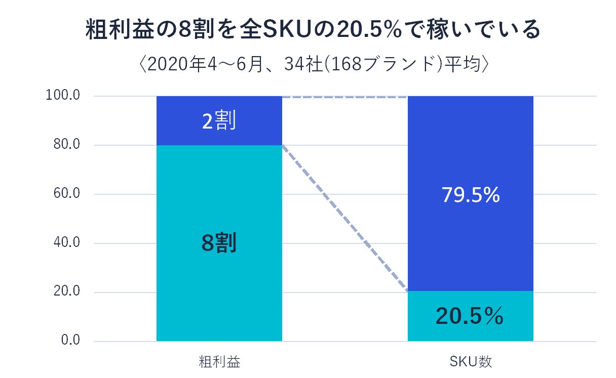 - 全SKUのわずか20%で粗利益総額の8割を稼ぐ