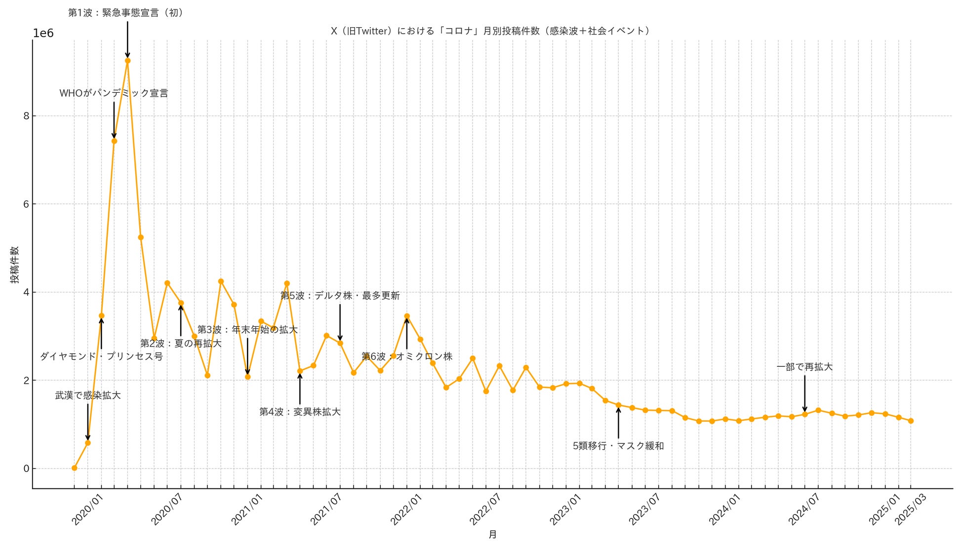 X(旧Twitter)の投稿件数で振り返る「コロナ」5年の記録と社会の変化