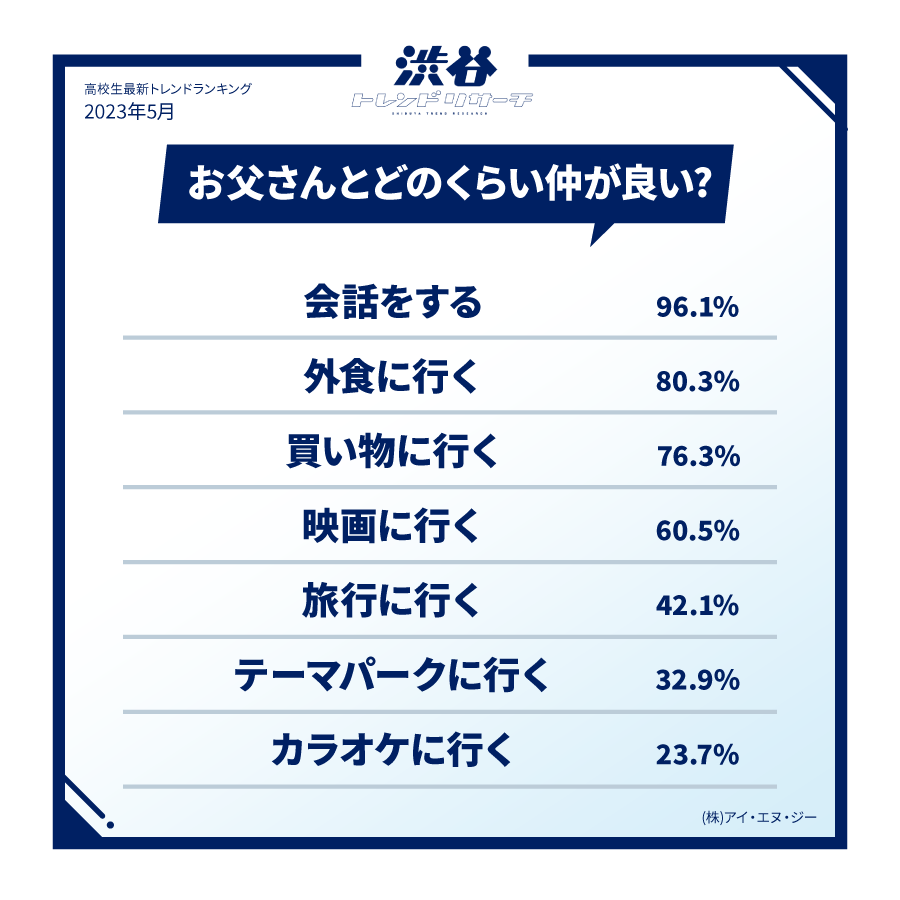 まずは、「お父さんとの仲の良さ」についての調査結果です。