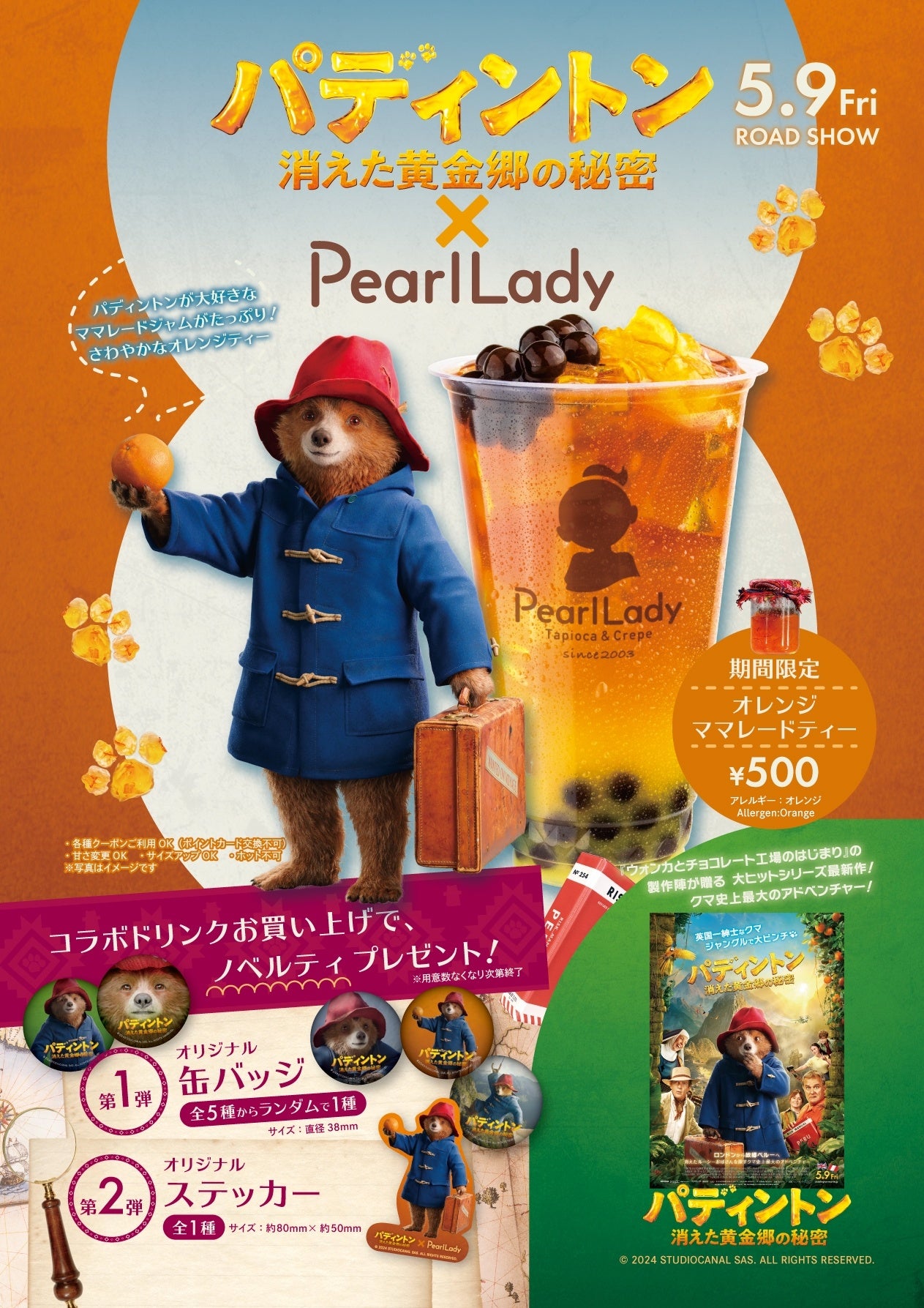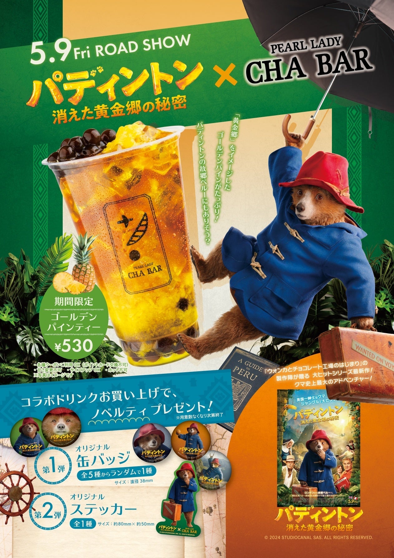 映画『パディントン 消えた黄金郷の秘密』とパールレディ&CHABARのタイアップが決定!作品をイメージしたコラボドリンクを販売!