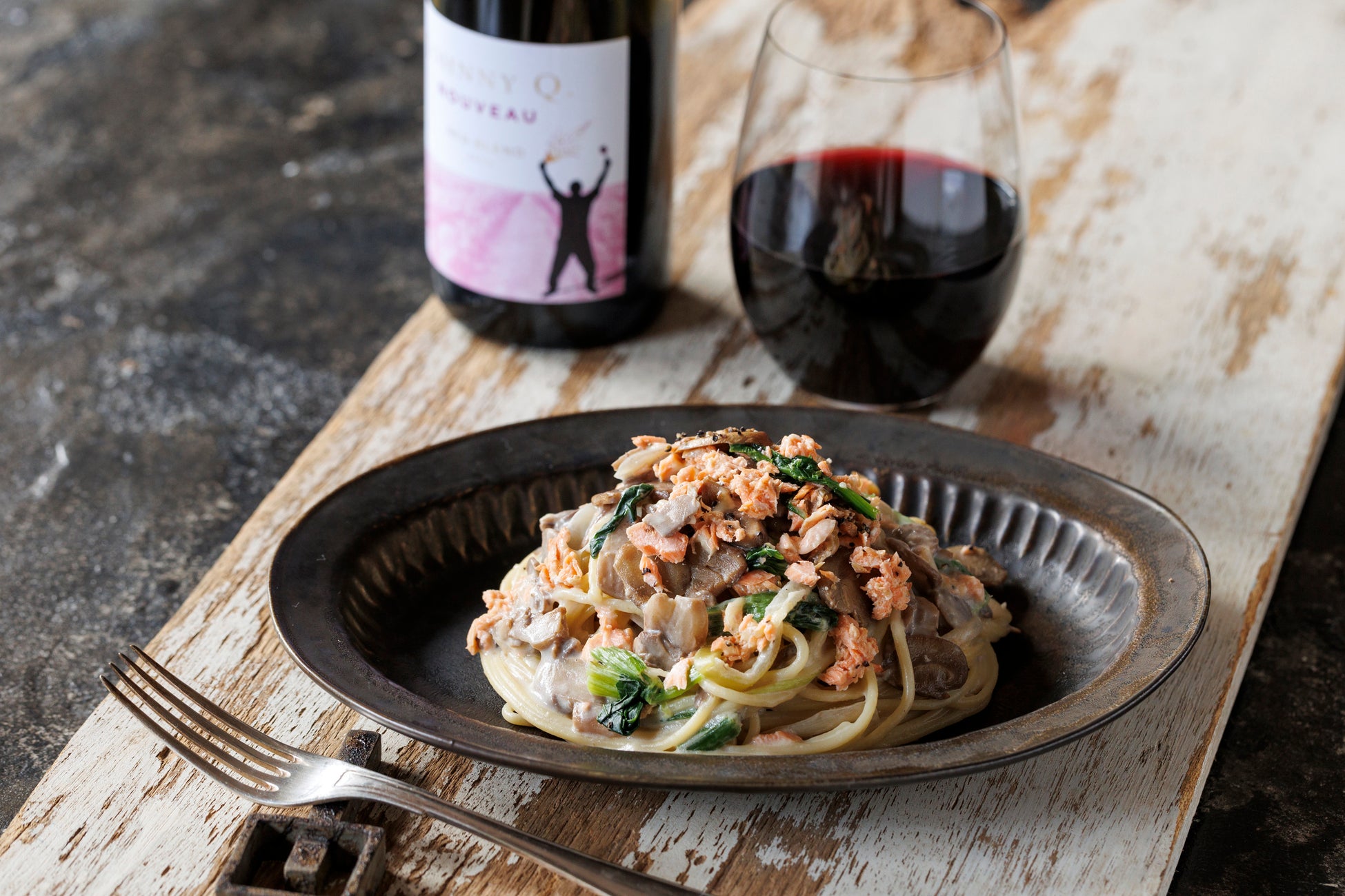 自社輸入した臭みがなく、引き締まった身が特長のサーモンを贅沢に使ったクリームパスタです。 成城石井の商品調達力を活かし、大量に仕入れることで、たっぷりとサーモンを使用しつつも、お求めになりやすい価格を実現しました。サーモンの旨味とクリーミーなソースの相性が良く、チーズを加えることでコクのある仕上がりとなっています。また、ベシャメルソースに牛乳だけではなく、生クリームやクリームチーズを加えることで味わいに深みを出しており、ボリューム感のある「立冬ヌーヴォ」と合わせることでクリーミーさが引き立ちます。