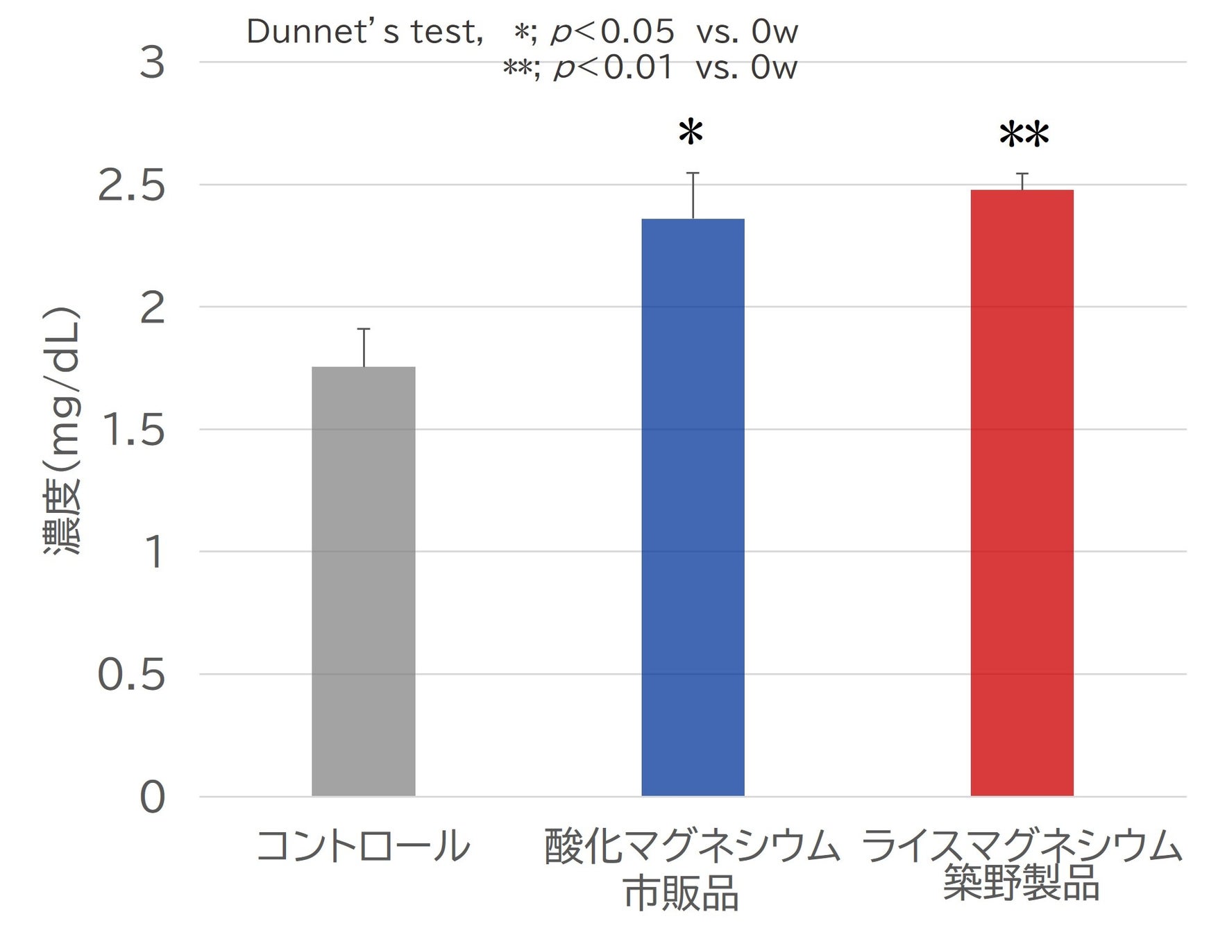 同量のMgを含む各素材を摂取し、3時間後の血清Mg濃度を測定。