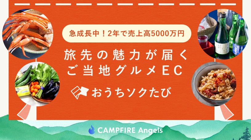 株式会社CAMPFIRE Startups(CAMPFIREグループ 本社:東京都渋谷区 / 代表取締役:出縄 良人 / 以下、当社 )の運営する、株式投資型クラウドファンディング「CAMPFIRE Angels(キャンプファイヤー エンジェルス)」。第19号案件として、ご当地グルメEC「おうちソクたび」で食卓にご当地グルメと旅気分を届け、新しい旅の形を提供する「Orange株式会社」の株主募集を、本日12月17日(金)20:00より開始いたします。