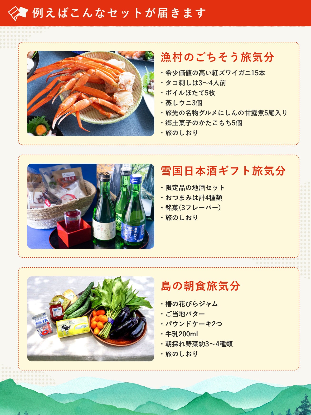 道の駅の駅長や、地元の方が通う飲食店や直売店の店主など、その土地のキーマンと連携して作られるセットに同梱されるオリジナルの旅のしおりには旅先の情報を掲載。読みながら食べれば、グッと旅気分が盛り上がります。