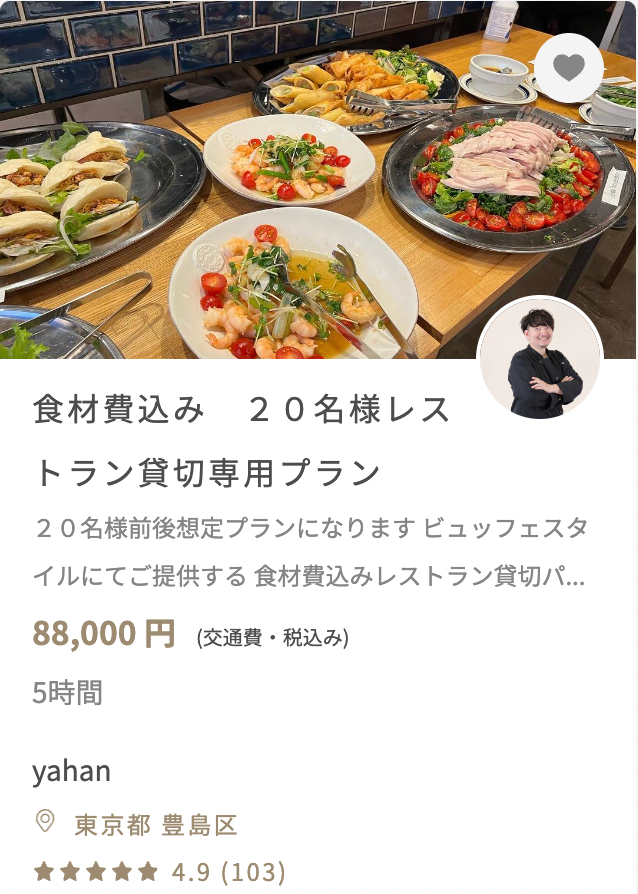 元ホテルレストラン出身なのでパーティーやコースプランも得意です。 料理人にとっての夢の一つである開業を身近に感じることができる体験を出張シェフをおこないながら開店できるので現代の新しい選択肢の一つだと思います。 新規でご利用下さるお客様にも登録シェフの人柄や料理を知ってもらう良い機会になるので楽しみです。