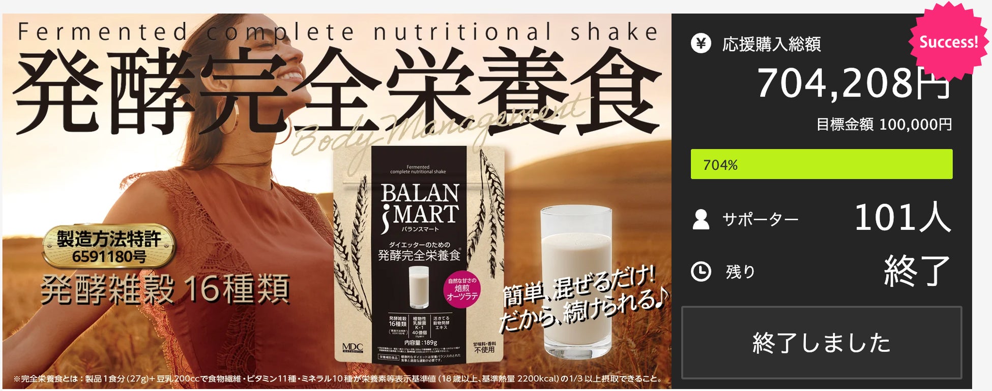 新陳代謝にこだわり、全ての人の美と健康を応援する株式会社メタボリック(代表取締役社長:西田和弘 本社:東京都新宿区、以下メタボリック) は、甘味料・香料不使用で発酵・雑穀素材にこだわった発酵完全栄養食※「BALANSMART(バランスマート)」を2023年4月12日に新発売させていただきます。