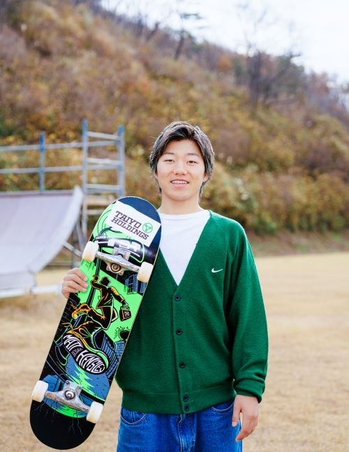 太陽ホールディングス様のブランドステートメント「楽しい世界は、楽しむ人がつくりだす。」は、スケートボードにも通じるものがあり、とても感銘を受けています。僕自身、スケートボードが大好きで楽しみながらここまで続けてきました。それは難しい技への挑戦であっても、恐れることなく楽しむことで乗り越えられた壁もたくさんありました。これから始まるパリオリンピック出場への道も、失敗を恐れずに日々練習に励んで邁進していきたいと思っています。僕の目標は「世界一のパークライダー」になることです。オリンピックで日本人初の男子パークメダリストになることもその夢の一つで、太陽ホールディングス様のように新しい世界を僕自身も楽しみながらつくっていきたいと思っています。多大なるサポートを力に、これからも全力で頑張って参ります。応援宜しくお願い致します。