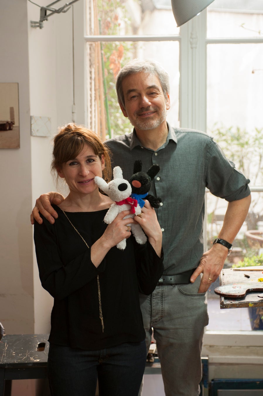 ほわほわの白いボディにつぶらな黒目、赤いマフラーがお似合いなのが、リサ。 黒いボディに青いマフラー、赤いお鼻にくりくり瞳が、ガスパール。リサとガスパールは、うさぎでもない、いぬでもない、キュートなパリの住人。人間の学校に通って友だちはいっぱいだけど、とくべつ仲良しなふたりは、遊びもいたずらもいつも一緒です。日本では現在まで計40タイトルの絵本が発売、 累計部数は約200万部以上に及びます。お話とブックデザイン担当の アン・グットマン(写真右)と作画担当のゲオルグ・ハレンスレーベン(写真左)夫妻によって 生み出された独自の世界観と温かみのある絵は多くの人を魅了しています。