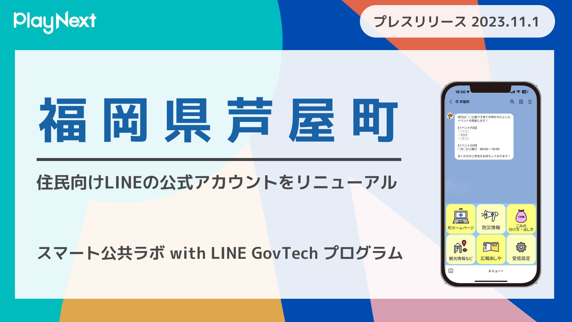福岡県芦屋町が住民向けLINE公式アカウントをリニューアル!プレイネクストラボ株式会社がシステム提供と構築を支援