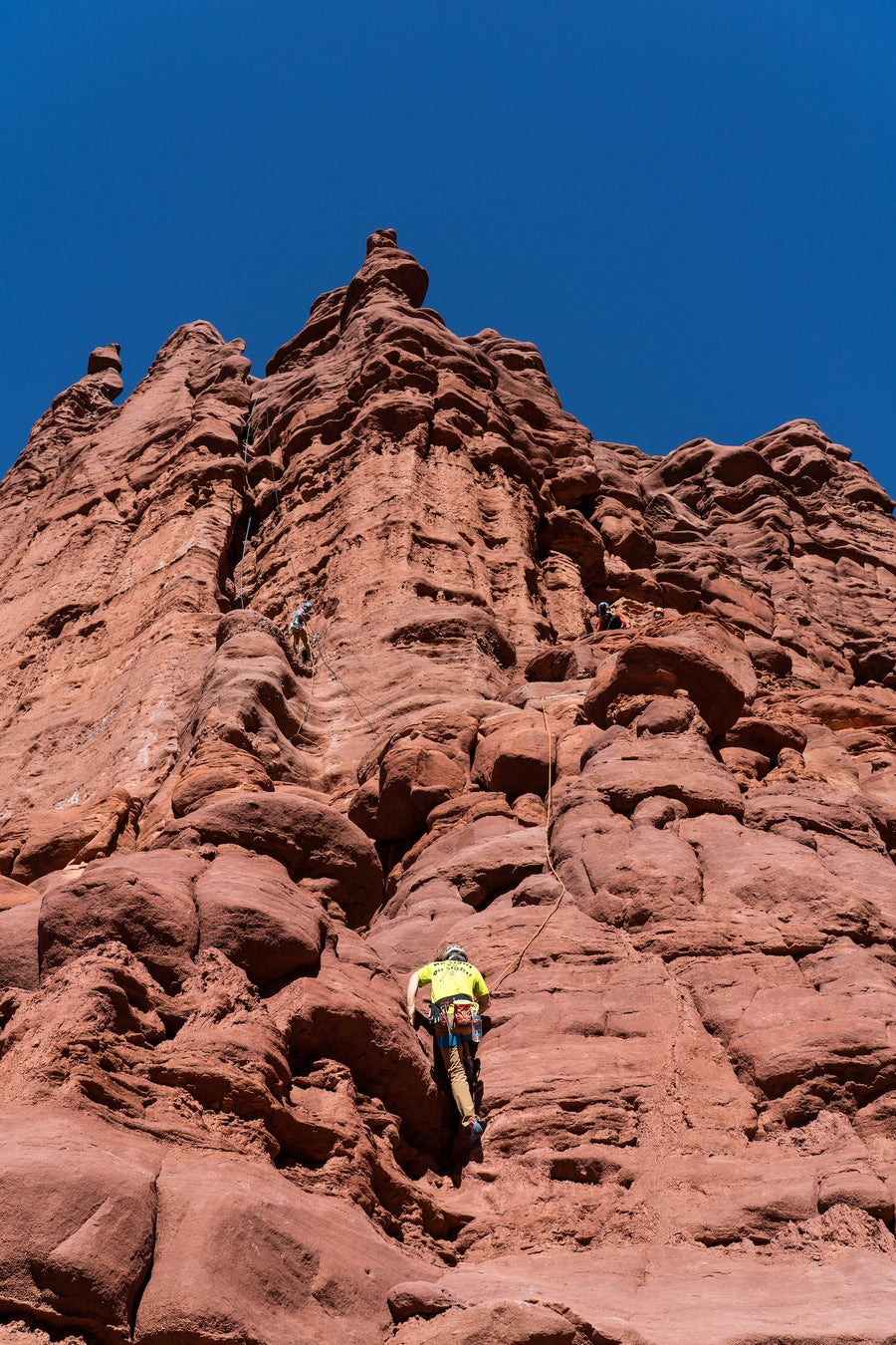 視力を失ったクライマー・コバ(小林幸一郎)と、彼の視力となるサイトガイド・ナオヤ(鈴木直也)。ふたりの出会いは 2001年。「右手、1時半、遠め。右、右、右!」、相棒・ナオヤの声を自分の目のように頼り、8の字結びのロープでつながり、命をゆだねて岩を登るクライマー・コバ。やがて彼らはパラクライミング世界選手権で4連覇を成し遂げ、2021年、ユタ州の大地に聳え立つ真っ赤な砂岩フィッシャー・タワーズの尖塔に立つことを目指し、アメリカへと旅に出る。想像を超える大自然、何億年もかけて作り上げられたダイナミックな岩山の絶景、コバの人生を変えた恩人で、世界7大陸の最高峰を制覇した全盲クライマーエリック・ヴァイエンマイヤー氏との再会。そこには、とびきりポジティブな心と溢れる笑顔、そして、ゆるぎないふたりの絆があった。そして、旅の目的地、フィッシャー・タワーズへ。不思議な造形をした岩の尖塔に、視力を失ったクライマーが相棒の声だけを頼りに、一体どうやって登るのか?不可能とも思える無謀な挑戦にふたりが臨む。