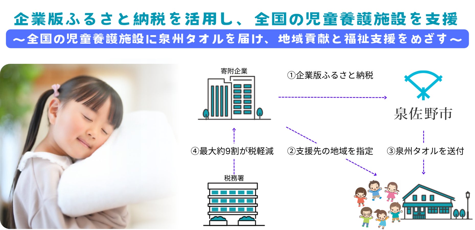 株式会社ユニメディア(本社:東京都千代田区、代表取締役社長:末田 真)が運営する企業版ふるさと納税ポータルサイト「企業版ふるさと納税アシスト」(https://biz-furusato.jp/)は、この度、大阪府泉佐野市が推進する企業版ふるさと納税の地方創生プロジェクト「全国の児童養護施設(*1)に泉州タオルを届ける事業」の取り扱いを開始いたしました。
