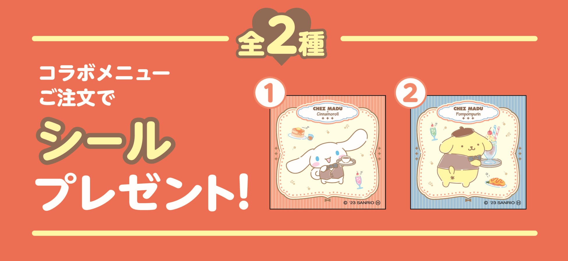 【 コラボメニューご注文で、CHEZ MADU × シナモロール♡ポムポムプリン オリジナルシールをプレゼント! 】