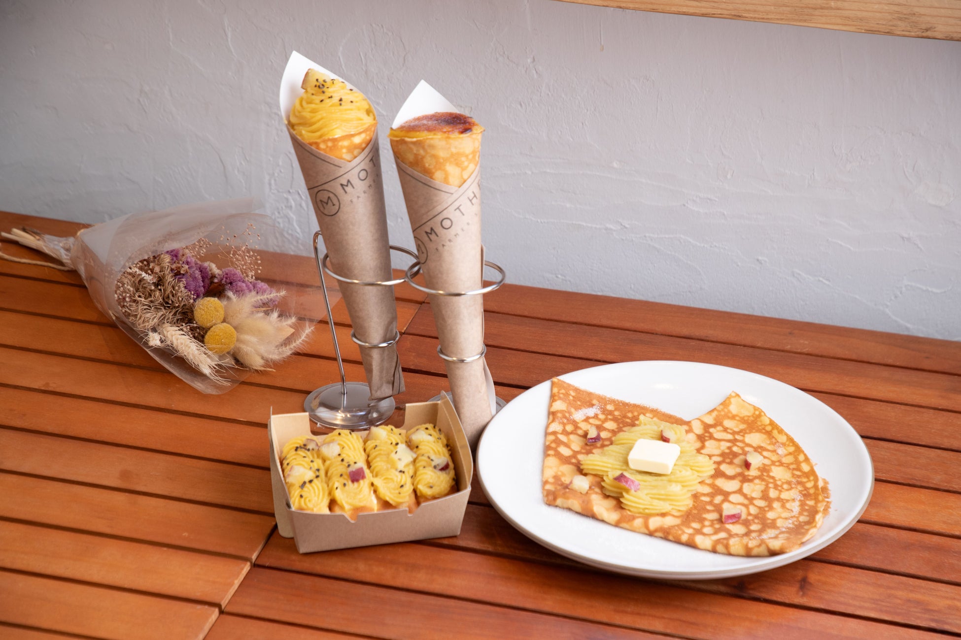 『FARMER’S TABLE MOTHER 』にて人気のハンドメイドクレープに秋の新作が勢ぞろい!ケーキのようなデコレーションの箱入りクレープも初登場!さつまいもクレープ3種 ・クレープケーキ販売