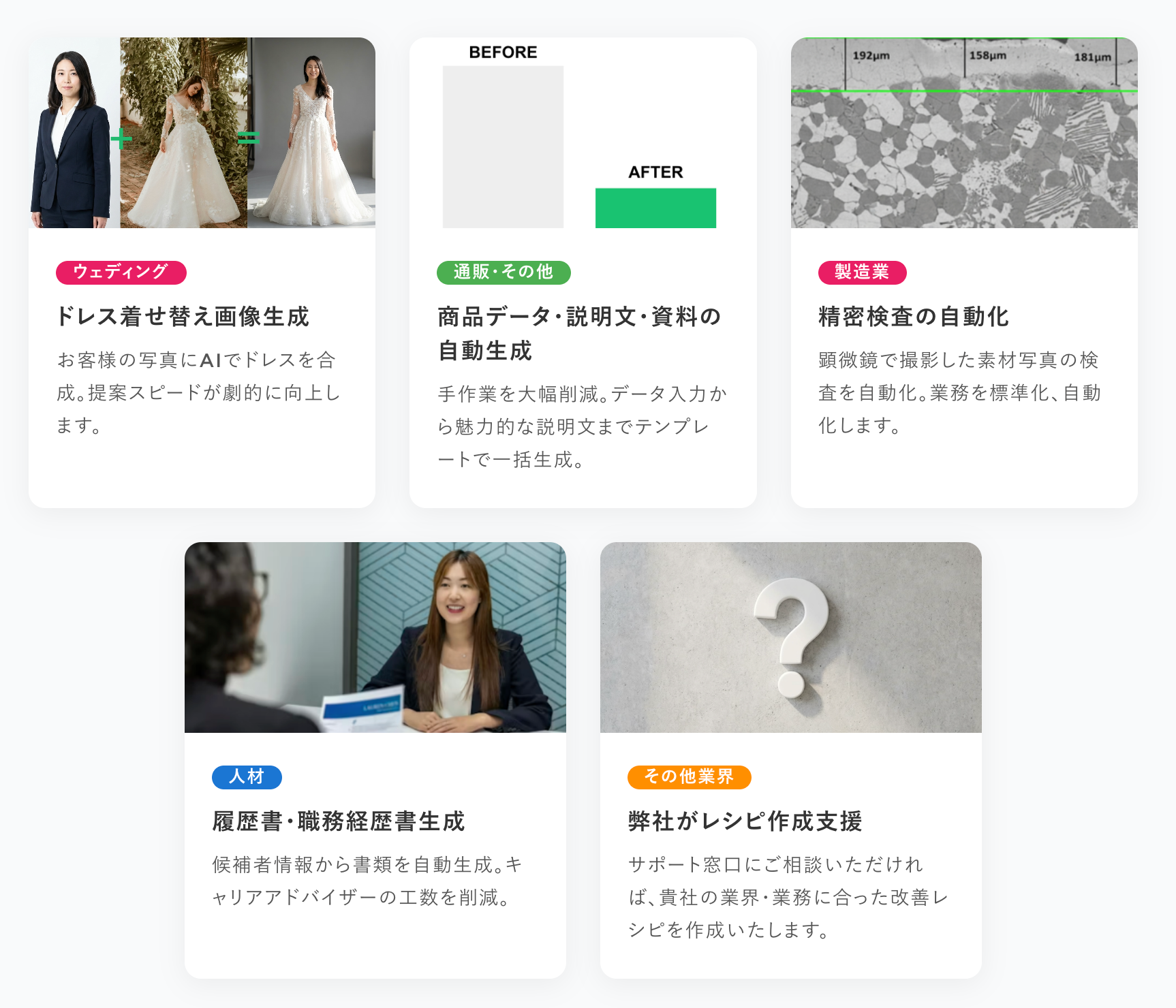 ・事業内容 :ソフトウェアサービス、人材育成、伴走支援、専用AI開発支援