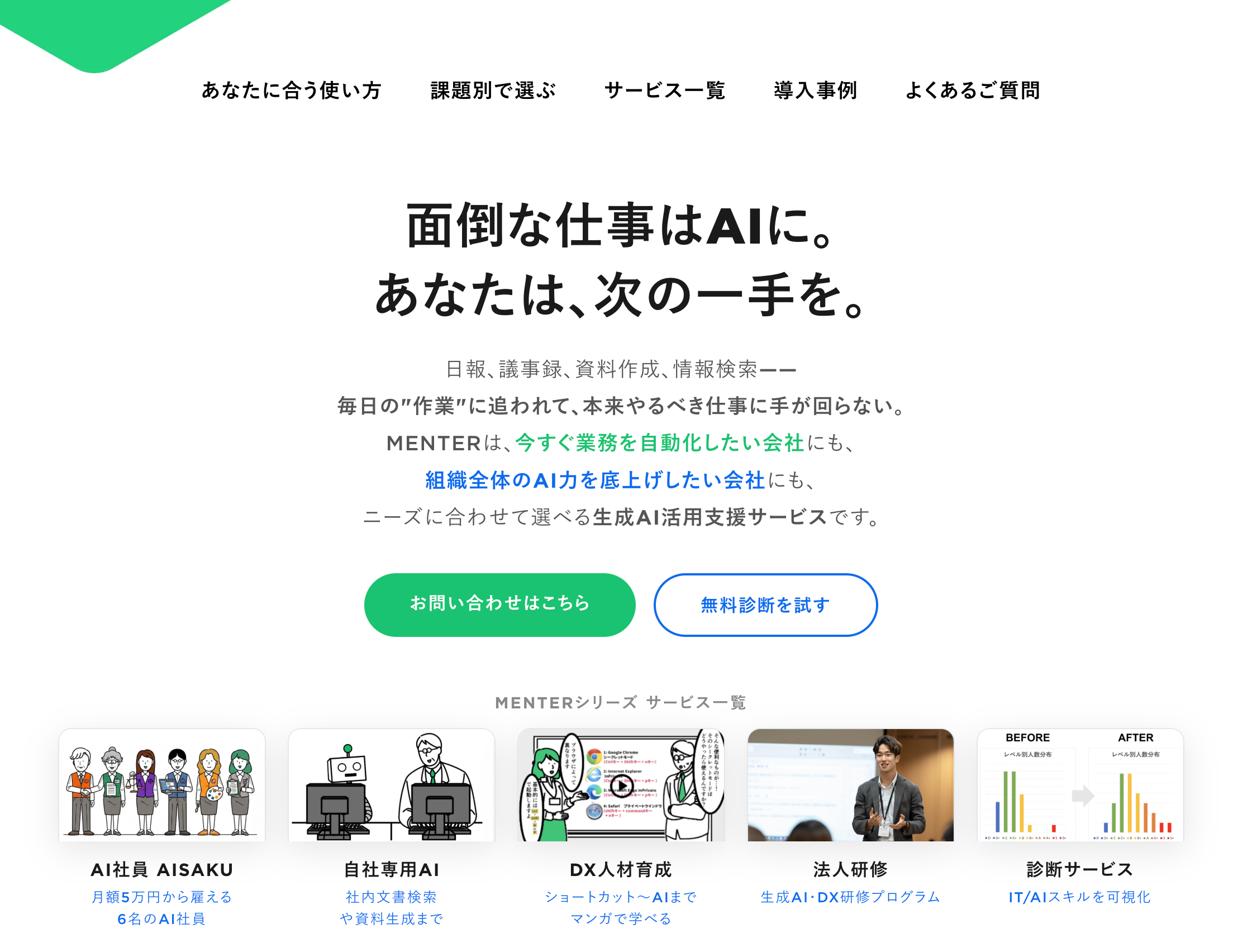 DX人材育成・生成AI活用支援に強い法人向けサービス「MENTER」シリーズ製品を提供する会社です。