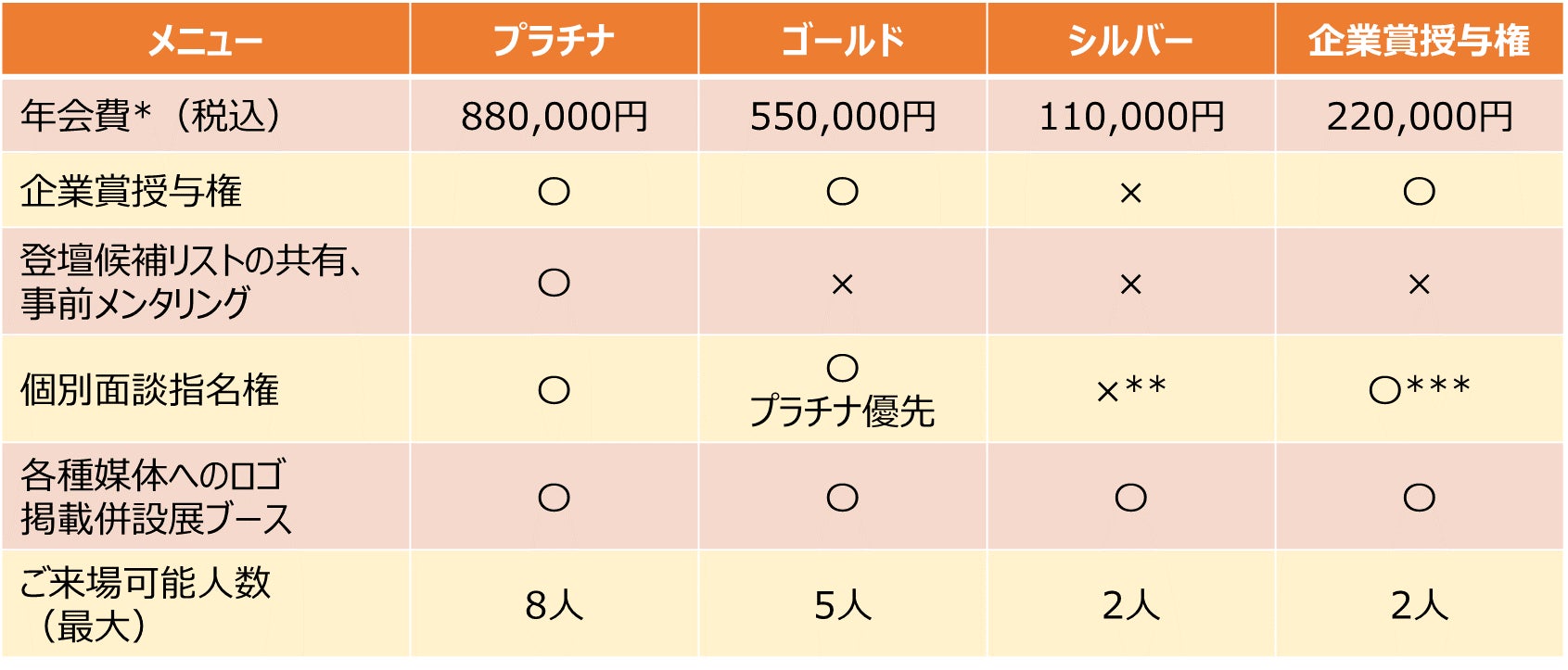 ***企業賞授与先に限り個別面談の指名権あり。ピッチ登壇者から指名された場合は上限なし。