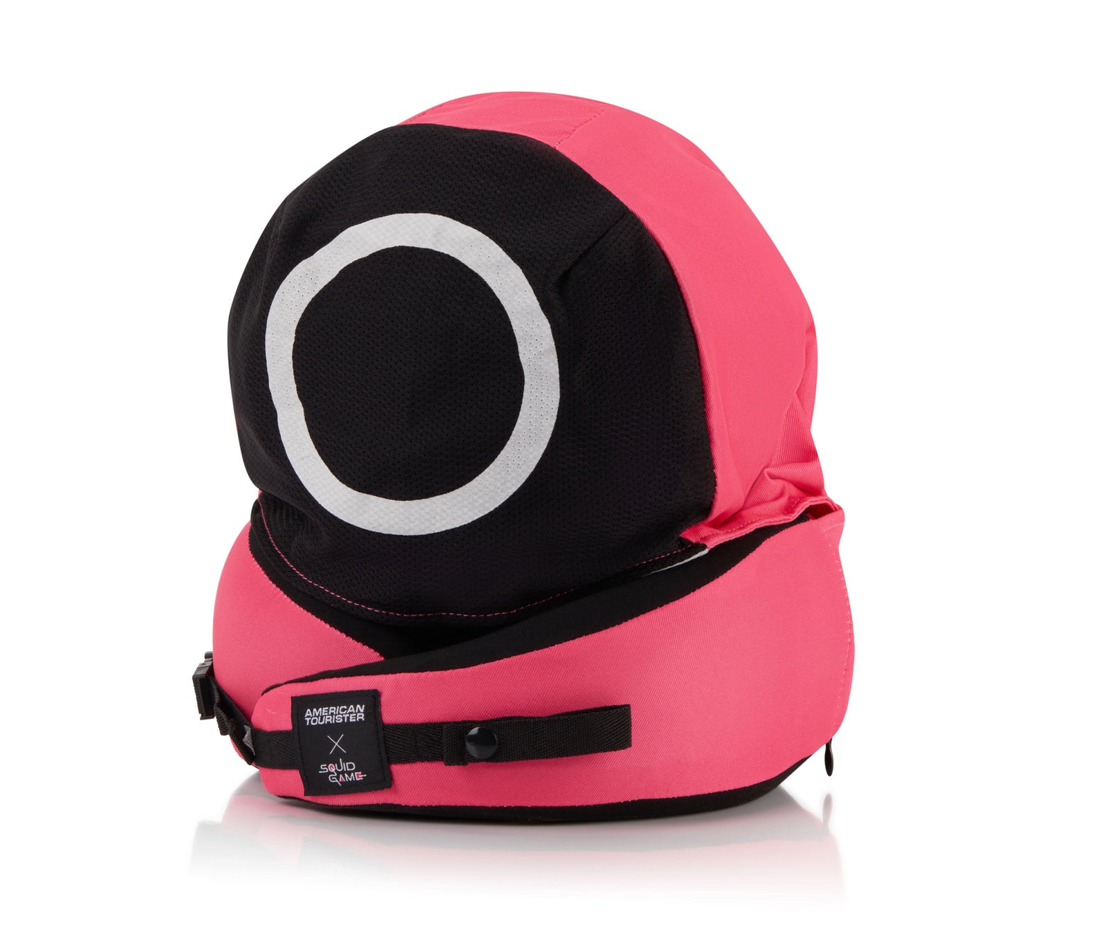 ・さっと取り出せる『イカゲーム』に登場するピンクガードのメッシュ素材のフードは、