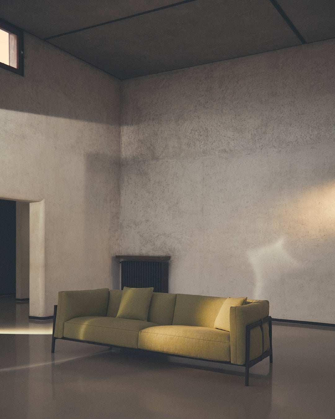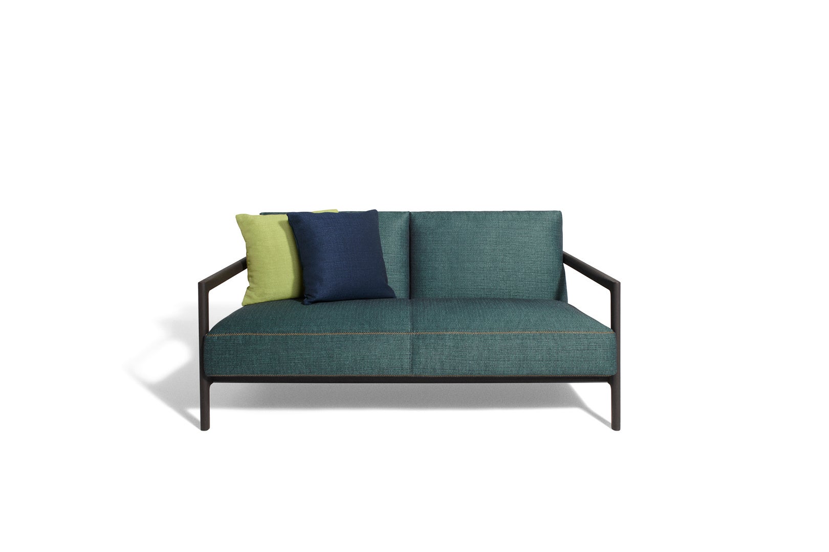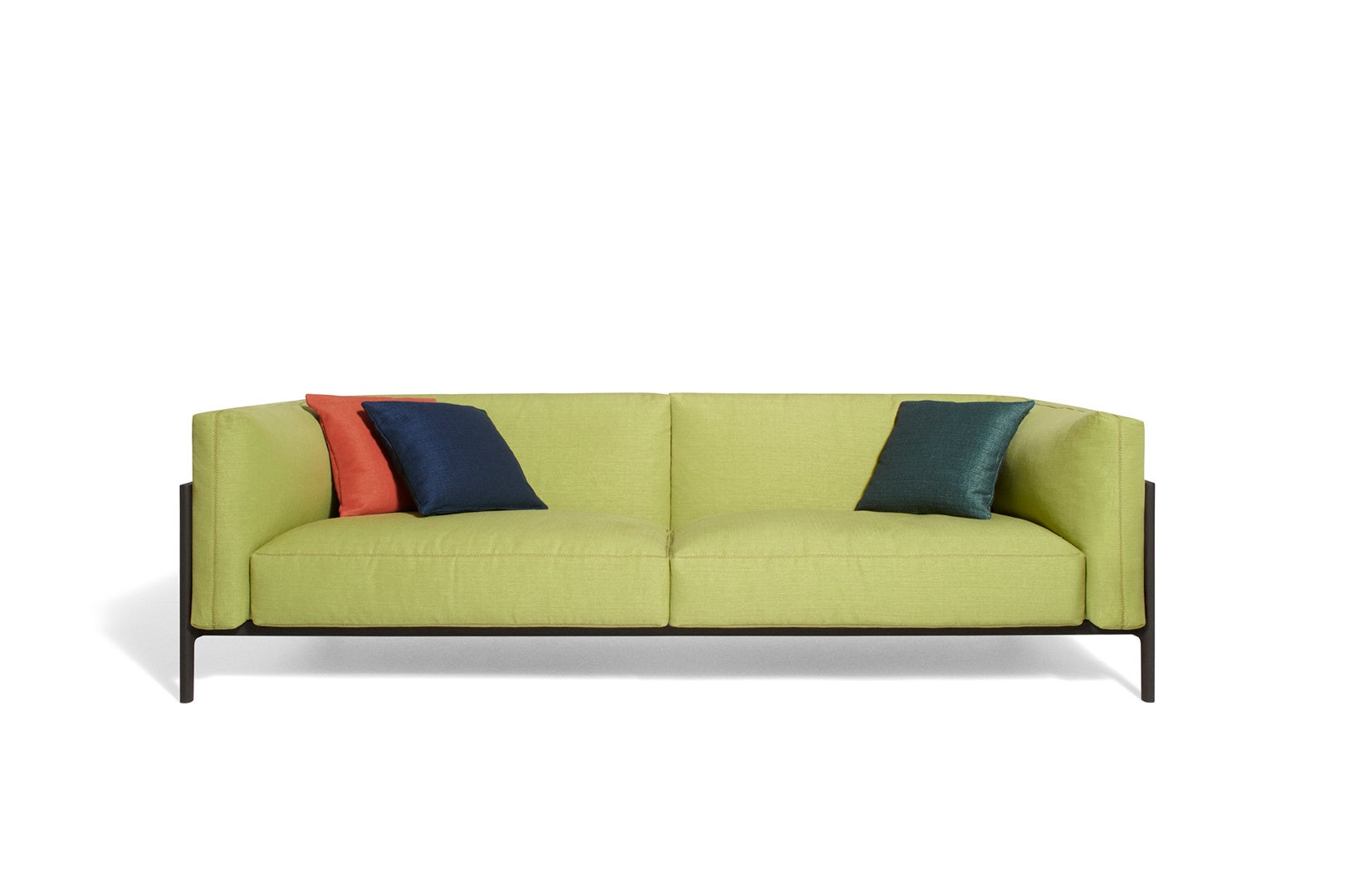 カラーパレットも素材使い同様に考え抜かれたセレクションです。ヒーローカラーである柔らかなライムグリーン、ニュートラルで自然な色調のエクリュやブリックレッド、深みのあるミッドナイトブルーやピーコックグリーンなどは、ダークブラウンのオーク材の木枠や、リッチなレザー、天然の大理石といったコレクションを彩る素材と調和しています。
