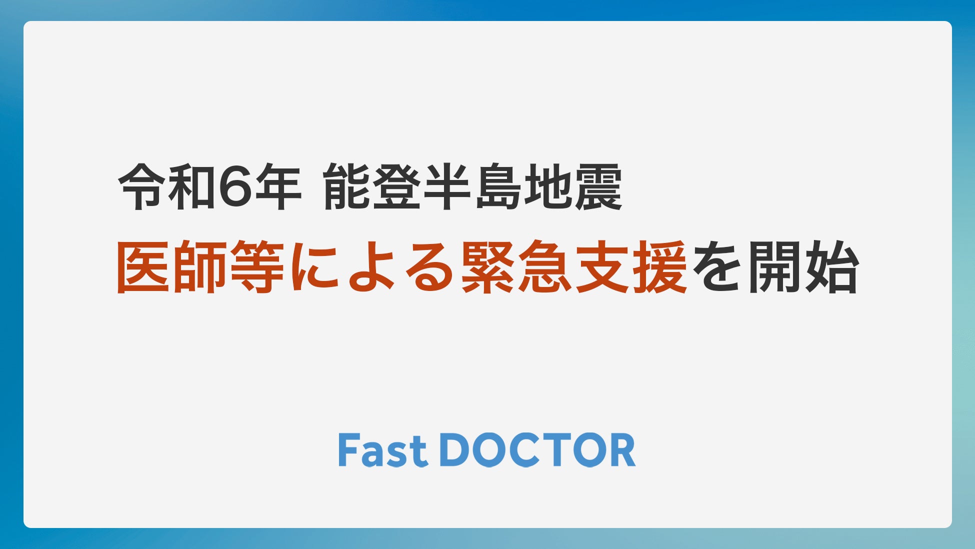 ファストドクター株式会社および提携医療機関(以下、ファストドクター)は、昨日発生した「令和6年能登半島地震」により被災された方々を支援するため、本日からオンラインでの無償の緊急医療支援を開始いたします。