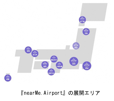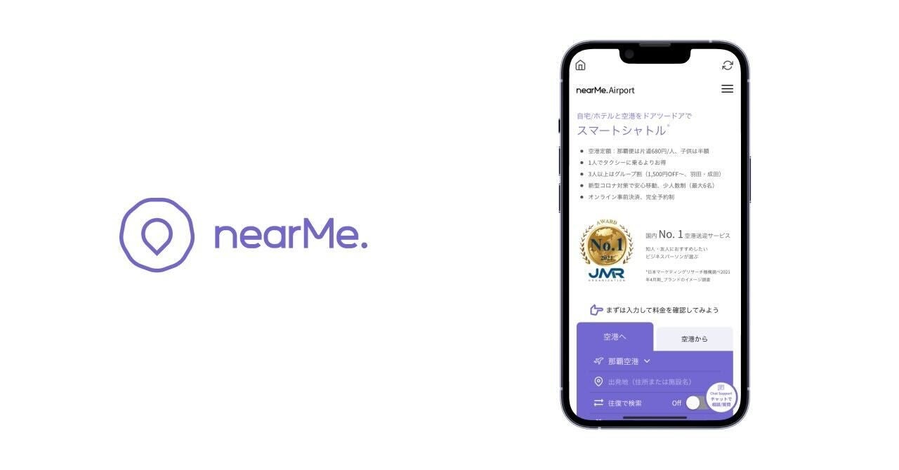 2019年夏より独自のAIを活用した最適なルーティングで、空港と市内とをドアツードアで結ぶ空港送迎、『nearMe.Airport(ニアミー エアポート)』を展開しています。現在は、全国12の空港(成田国際・中部国際(セントレア)・関西国際・大阪国際(伊丹)・東京国際(羽田)・新千歳・福岡・北九州・那覇・青森・南紀白浜・徳島)と、空港周辺の都市部でご利用いただくことができます。対象エリアであれば、出発地となるご自宅から空港、そして空港から最終目的地まで一気通貫でつながるため、公共交通機関の乗り換えがなくなるなど、ストレスフリーな移動体験を提供することができます。nearMe.Airport(ニアミー エアポート)はこれまで延べ12万名様以上のユーザーの方々にご利用いただいています。