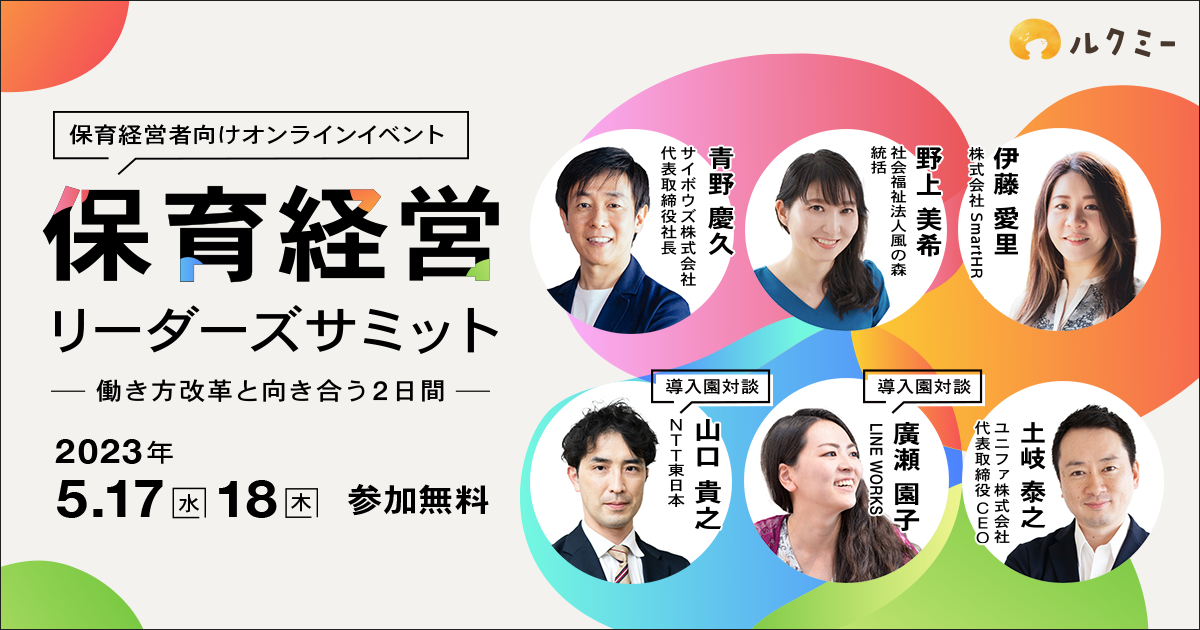そこでルクミーは、「こどもまんなか社会※3」実現のため、保育業界から働きかけることが重要となるこのタイミングで、セミナーの開催を決定しました。今回は、初めての試みとして「異業種×働き方改革」をテーマに、保育業界とは異なる領域の有識者の方もゲストとしてお招きしての開催となります。