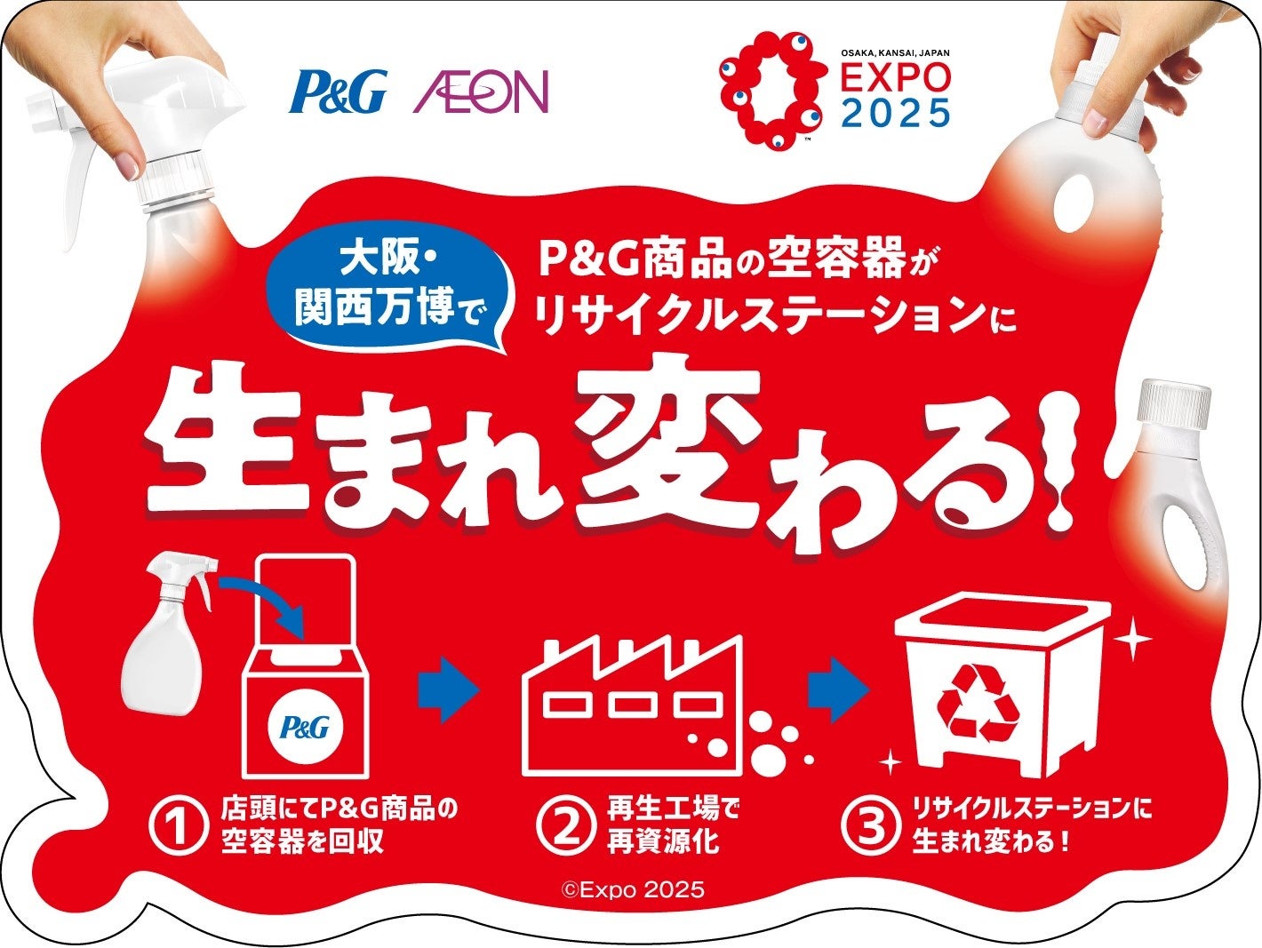 P&Gジャパン合同会社(本社:兵庫県神戸市/以下、P&G)とイオン株式会社(本社:千葉県千葉市/以下、イオン)は、「EXPO 2025 みんなのリサイクルステーションプロジェクト*1」を、2023年10月19日より開始いたします。