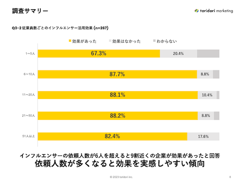 【調査レポート第三弾】成功の秘訣は「6人以上のインフルエンサーに依頼すること」?インフルエンサーマーケティング企業toridoriが徹底調査・500人の声からわかったインフルエンサーPR必勝法!