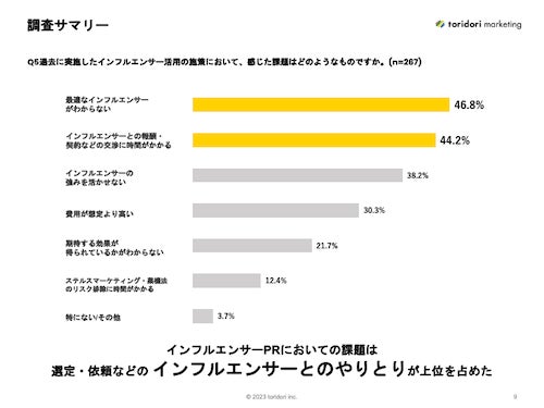 今後も、『toridori marketing(トリドリマーケティング)』では、企業におけるインフルエンサーマーケティングに関する調査を継続的に行い、発表していく予定です。ご期待ください!
