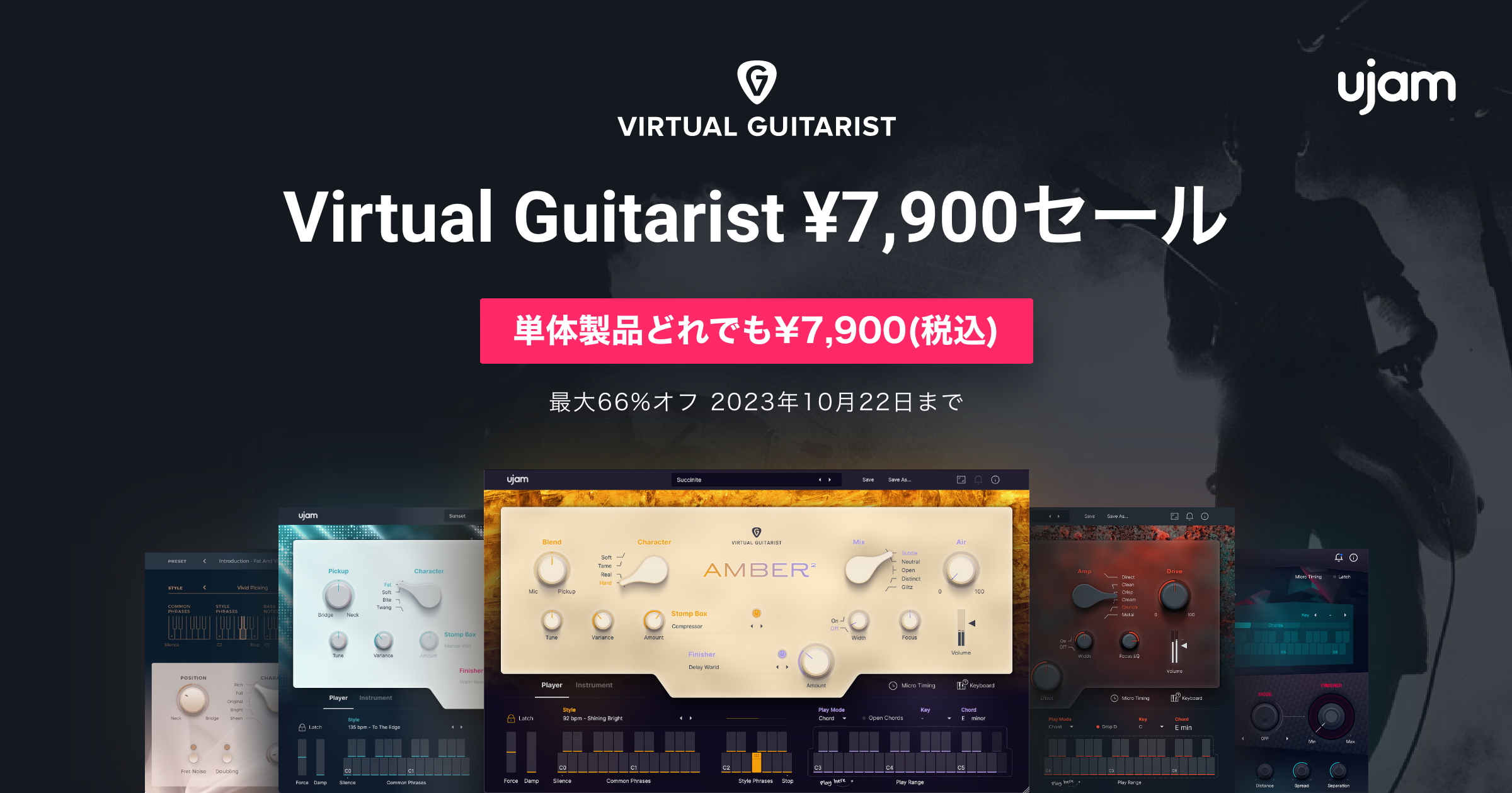 最大66%オフ!UJAMの人気ギター音源、Virtual Guitaristの単体製品が2023年10月22日まで¥7,900(税込)になる大セール